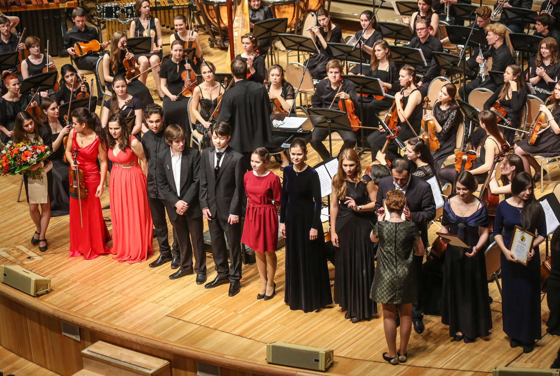 В нынешнем сезоне уже традиционно в конце мая в Москву приехали молодые музыканты из разных стран СНГ и регионов России, чтобы выступить с Юношеским симфоническим оркестром на сцене Светлановского зала Московского международного Дома музыки. Прежде фестиваль проводился в атриуме Государственного музея Пушкина — светлом, приятном, но небольшом, а теперь, переместившись на крупнейшую академическую площадку столицы, стал, кажется, еще более торжественным и масштабным. Как и в предыдущие годы, мероприятие посетили известные общественные и государственные деятели, в том числе заместитель Премьер-министра Республики Татарстан и Полномочный Представитель Республики Татарстан в России — Равиль Ахметшин. А почетной музыкальной гостьей стала знаменитая японская пианистка Томона Миядзаки, которая исполнила коронное произведение своего репертуара — фортепианные вариации Гинга Кобаяси на тему «Сакура».