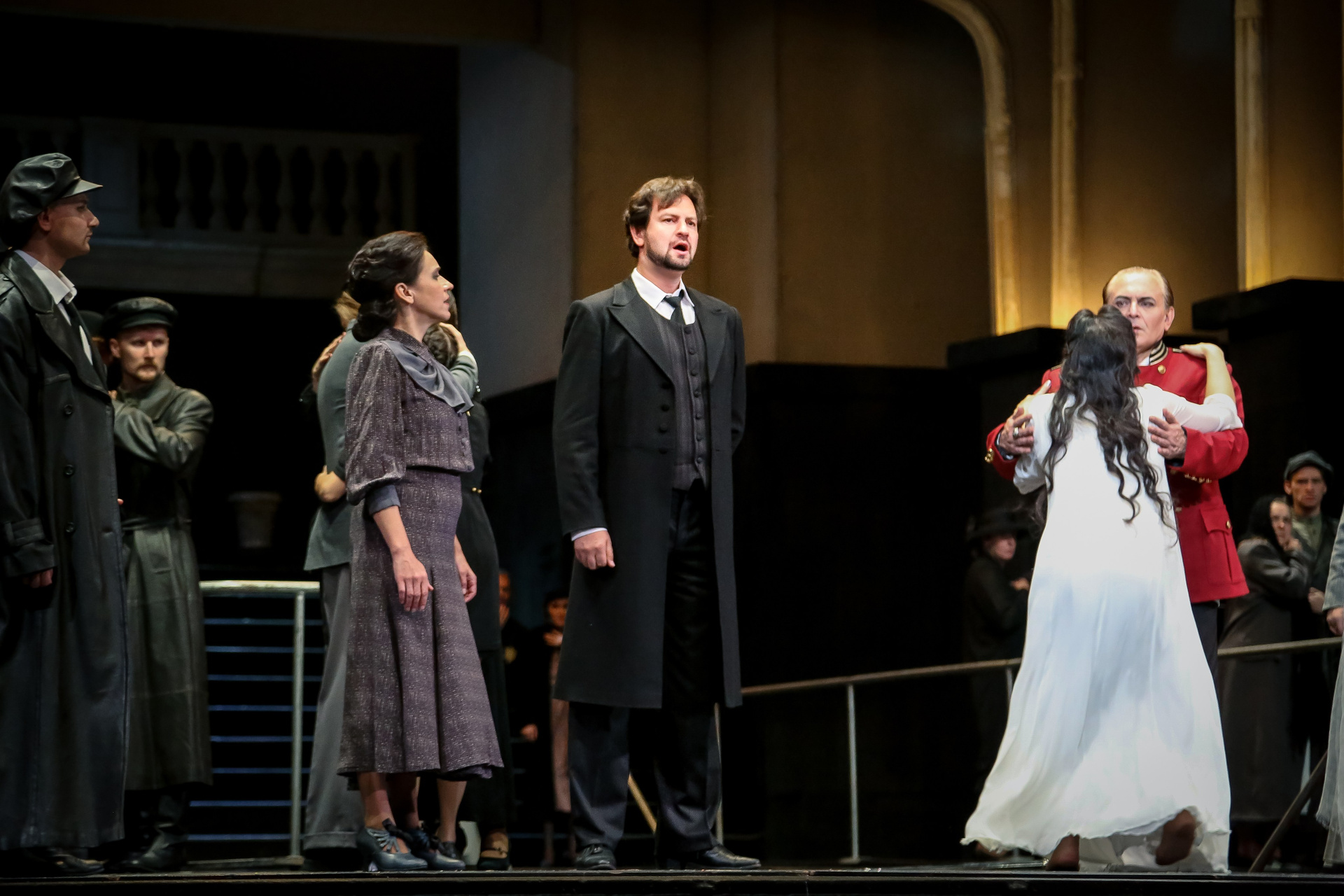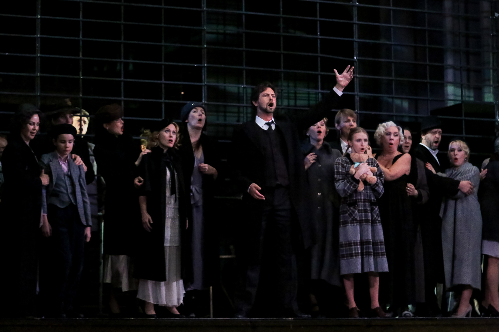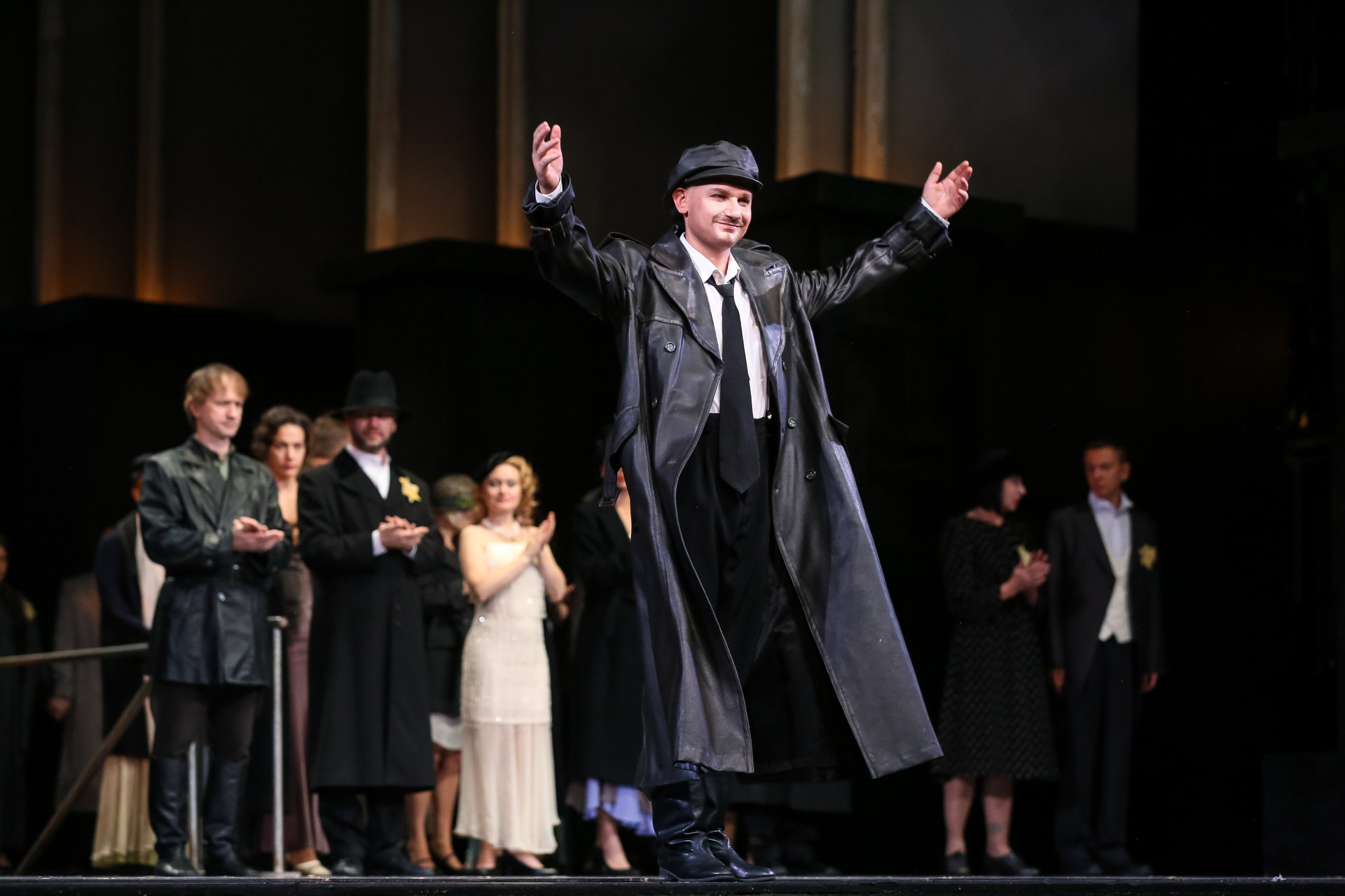 Конечно, поклонников «большого стиля» и оперной эстетики 19 века — тех, кто устал от актуализаций и жалуется на режоперу — это всё может покоробить. С другой стороны, в спектакле есть множество моментов, очень точно бьющих в цель. И само место действия — красивая в своей монументальности, но зловещая станция метро, одновременно убежище и узилище. И трогательно расчехленные инструменты, на которых играют евреи (ну, а что им еще остается делать в ловушке) — так что знаменитое виолончельное соло во втором действии звучит прямо со сцены. Решетка, желтые звезды на одежде… Все эти приемы, понятные и ожидаемые, тем не менее, бьют под дых и отзываются чем-то очень-очень личным. Для меня во всяком случае.