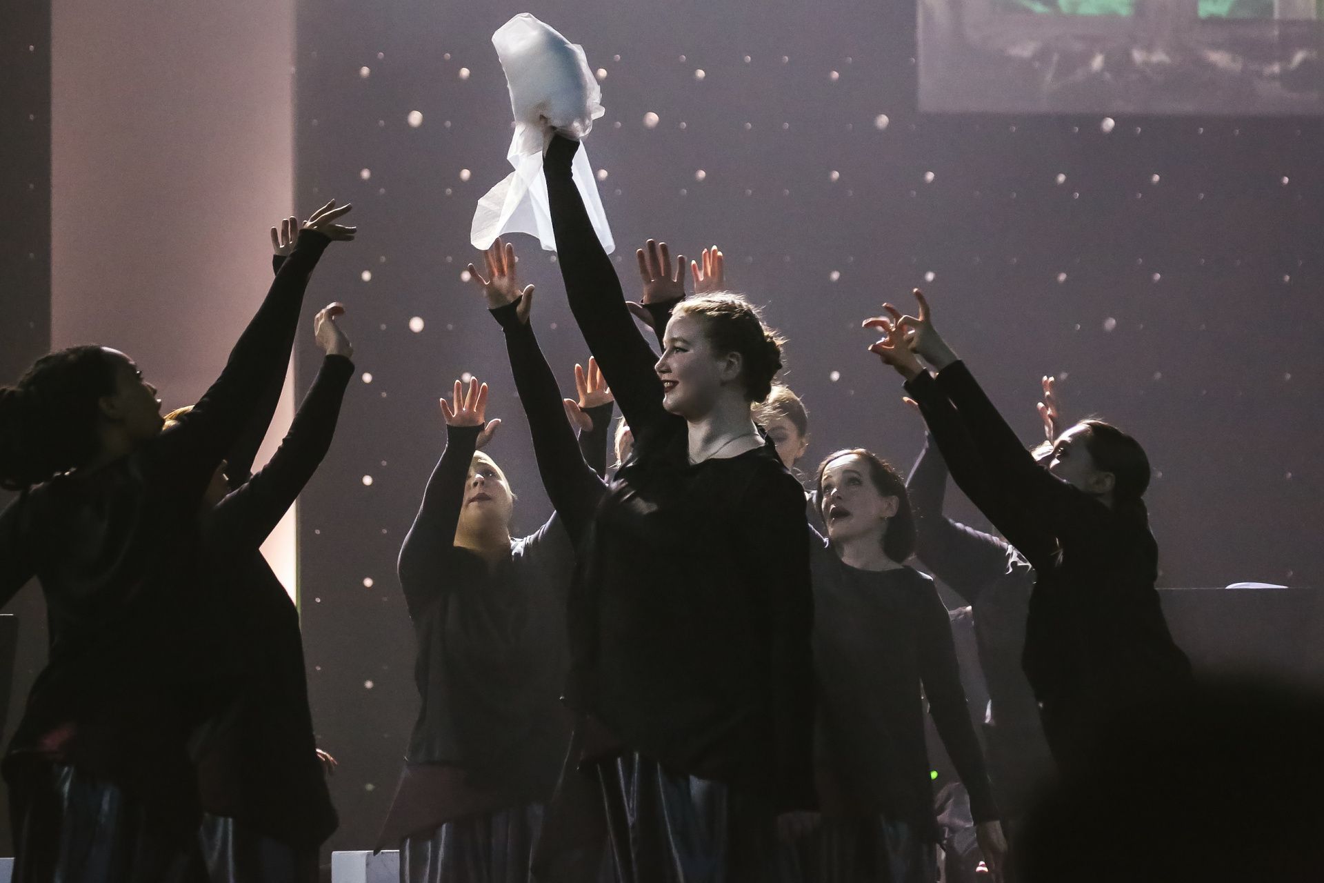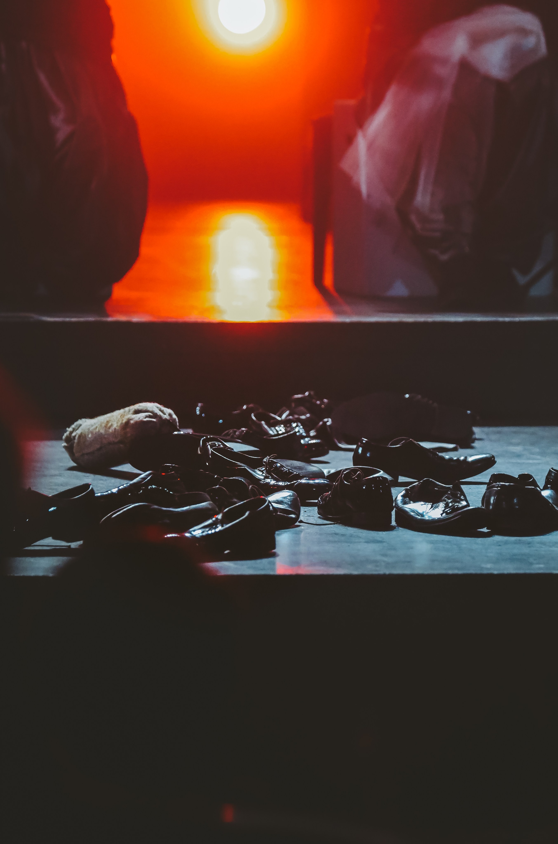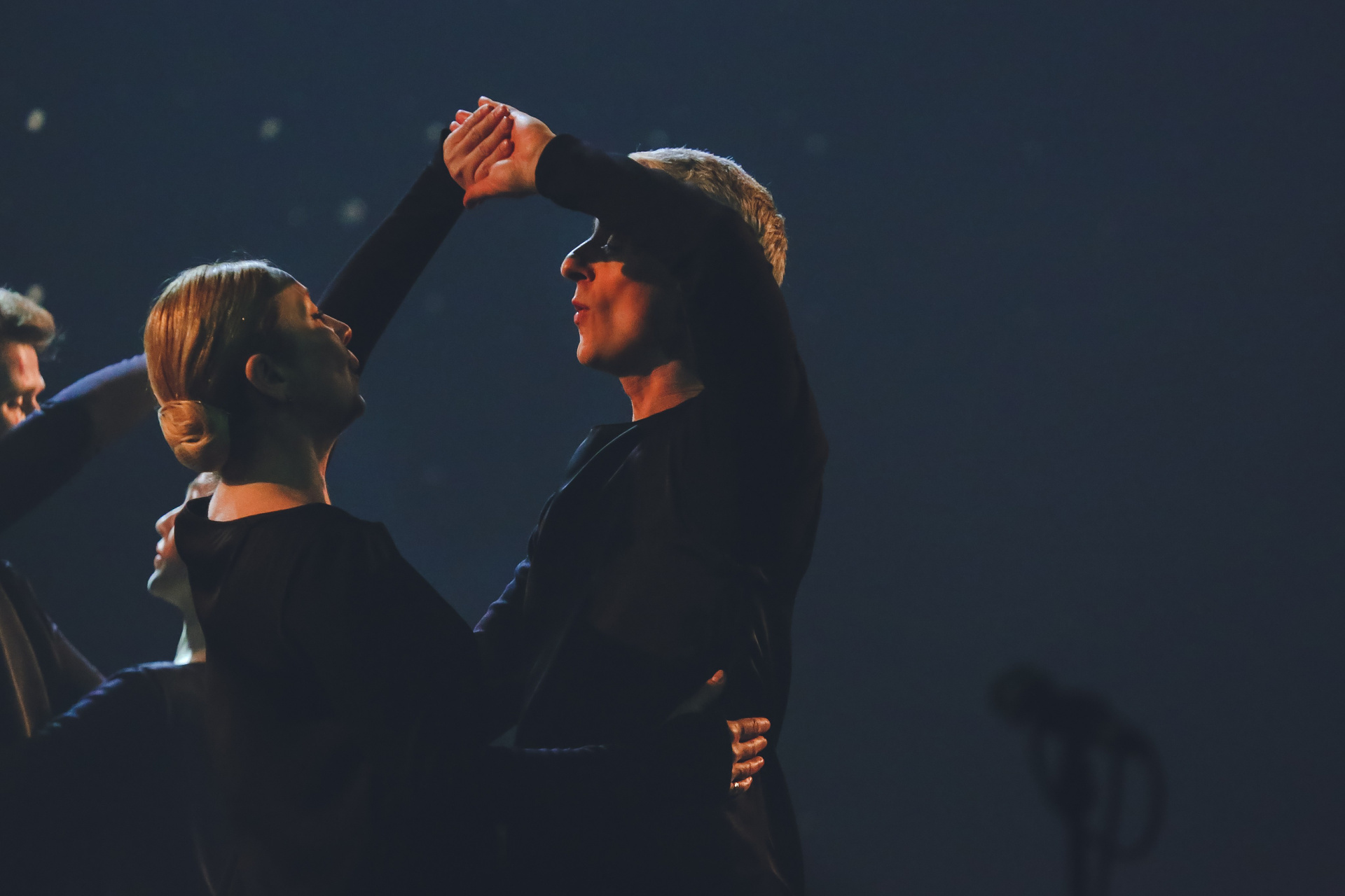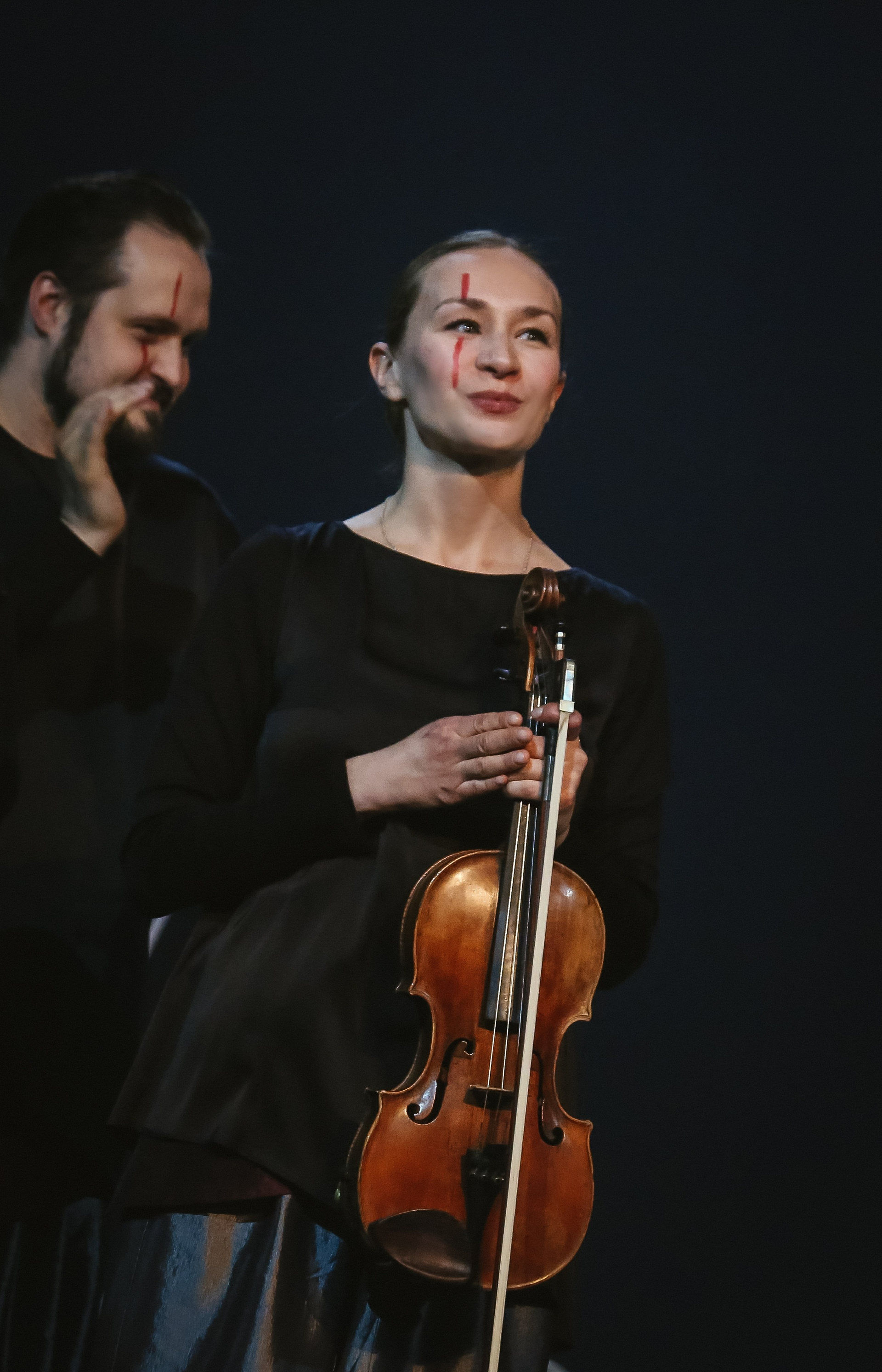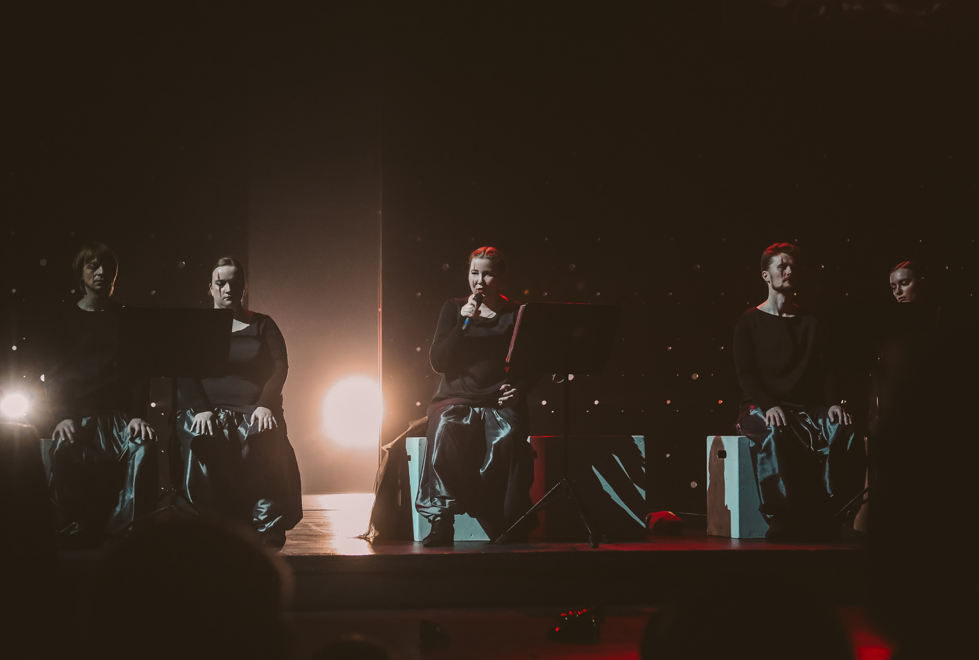 Премьера произведения в концертном исполнении Камерного хора «Новой оперы» прошла летом 2017-го, а через год осуществилось уже полноценное сценическое воплощение в волшебном пространстве Зеркального фойе театра, которое потрясло меня до глубины души. Неделю назад «Красное» вернулось в афишу и было представлено уже на сцене, причем с обновленной сценографией и потрясающей световой партитурой (отдельная радость фотографа). Сценический язык и символы остались прежними, но, безусловно, визуально и по смыслу это, фактически, совсем другой спектакль — еще более значительный по накалу, трагизму и масштабу, камерный только по форме, но не по сути.