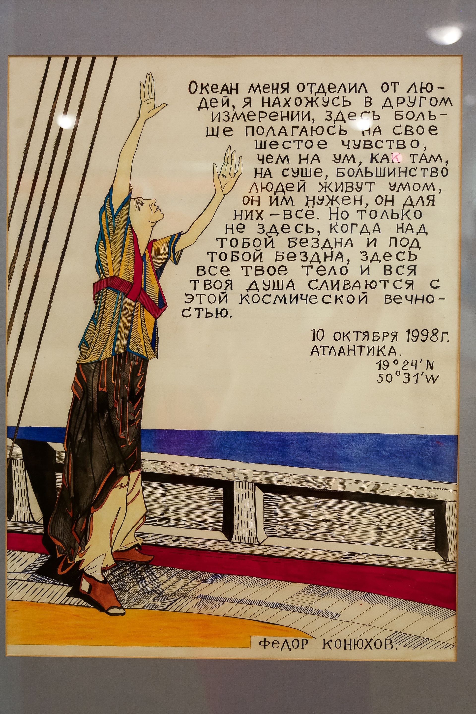 Совершить это путешествие вместе с Федором Филипповичем, пускай и заочно, через его работы, можно до 6 марта — столько продлится выставка. Ну, а потом будем следить за его новой экспедицией — переходом через Атлантику с Востока на Запад на катамаране, работающем на солнечной энергии!