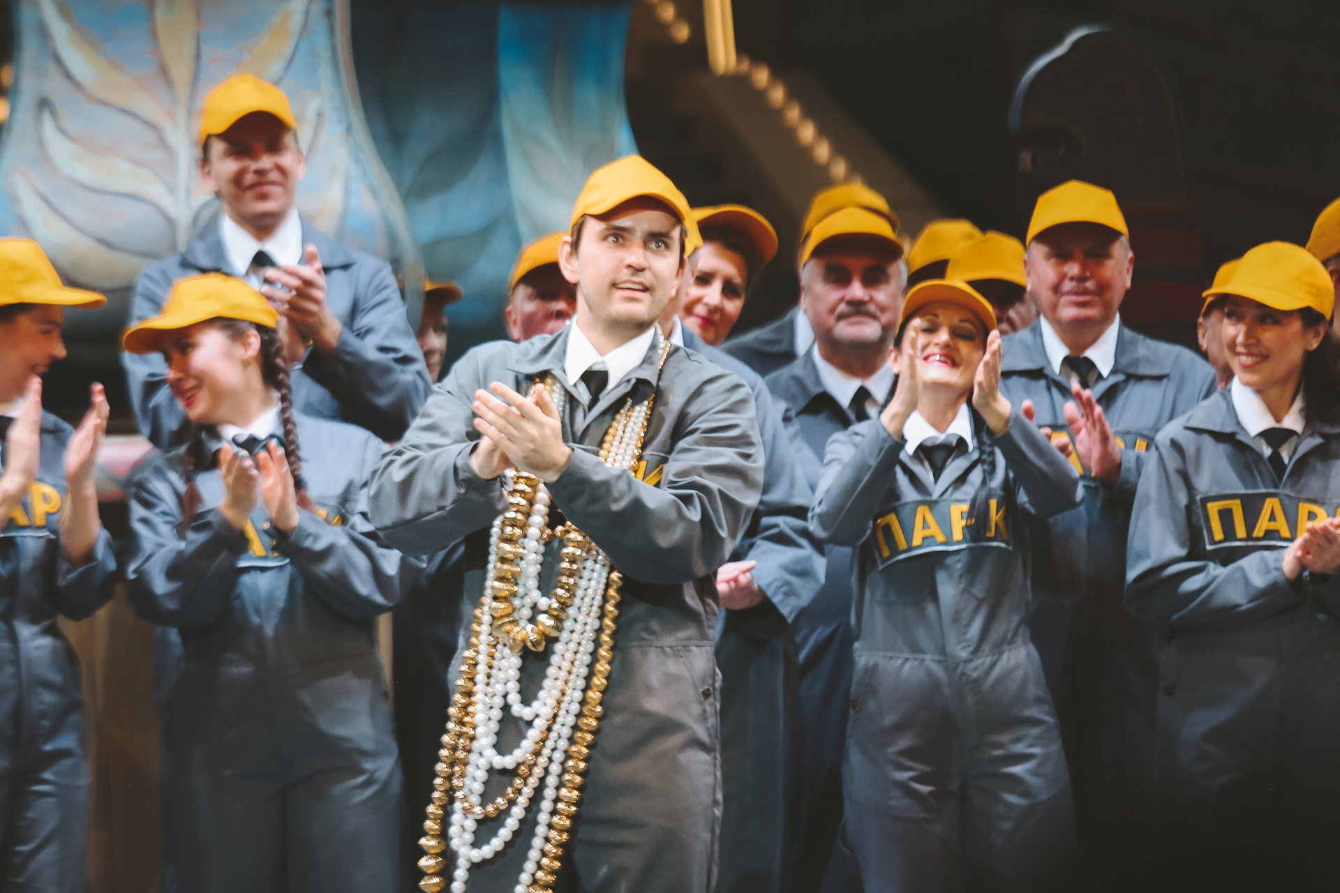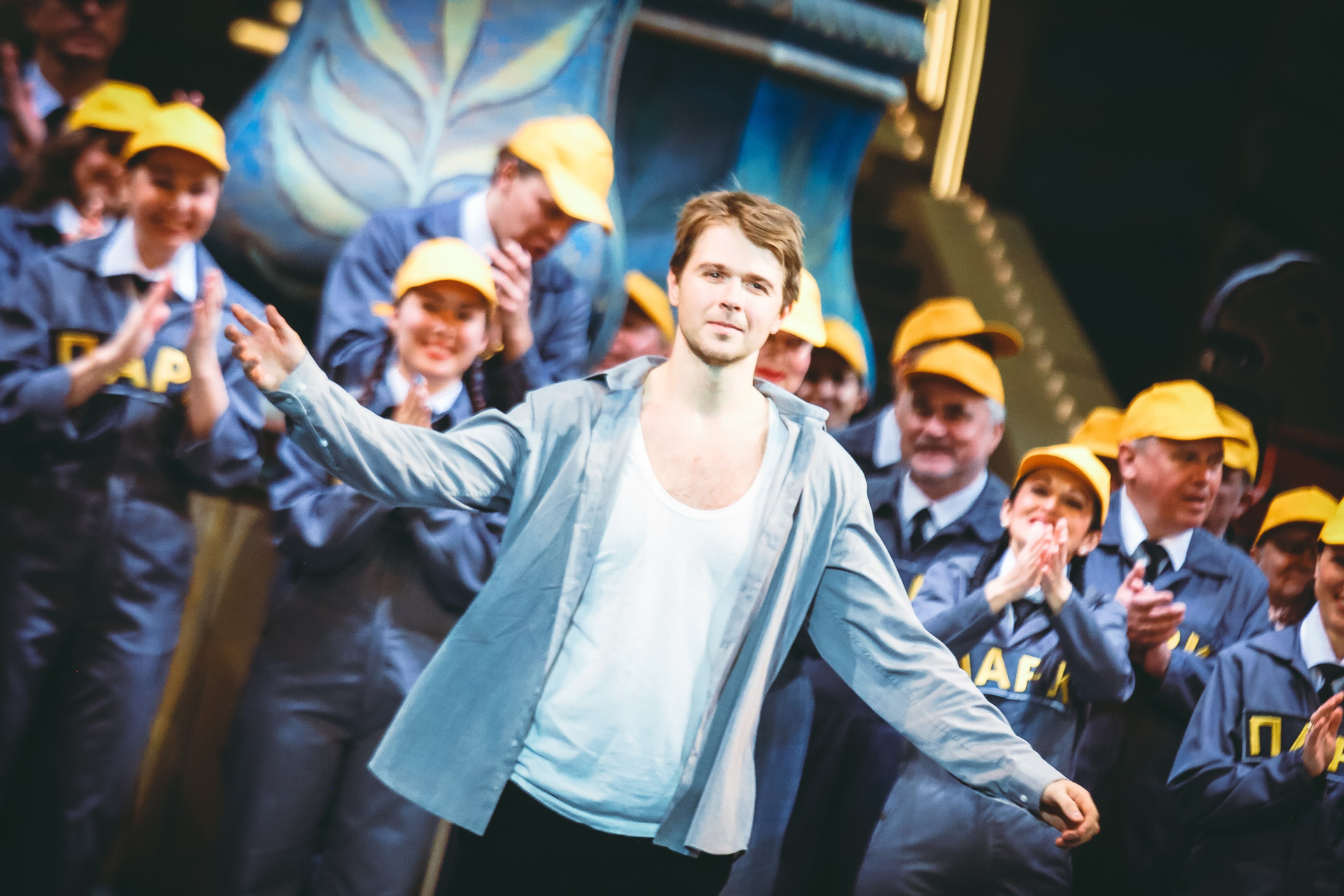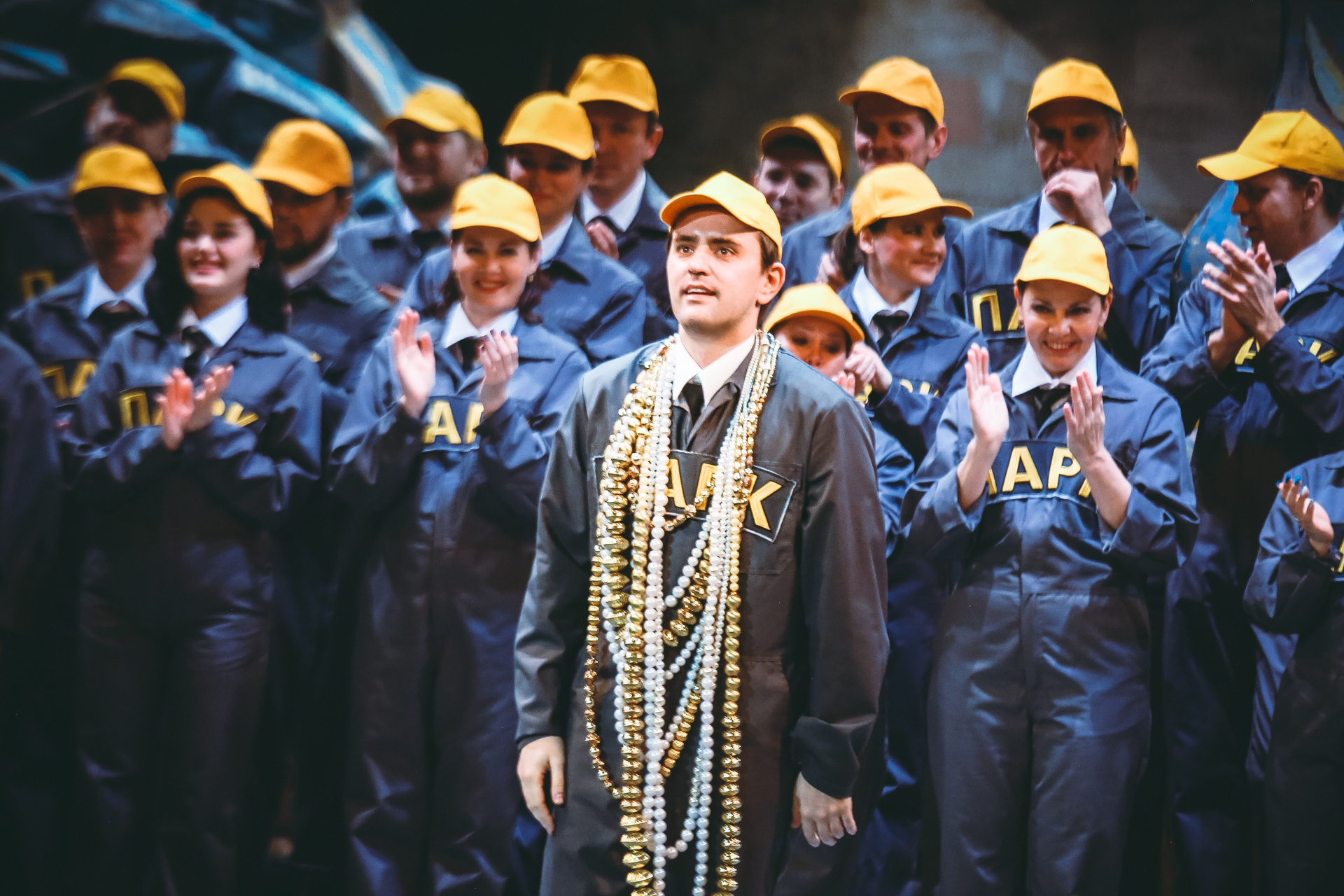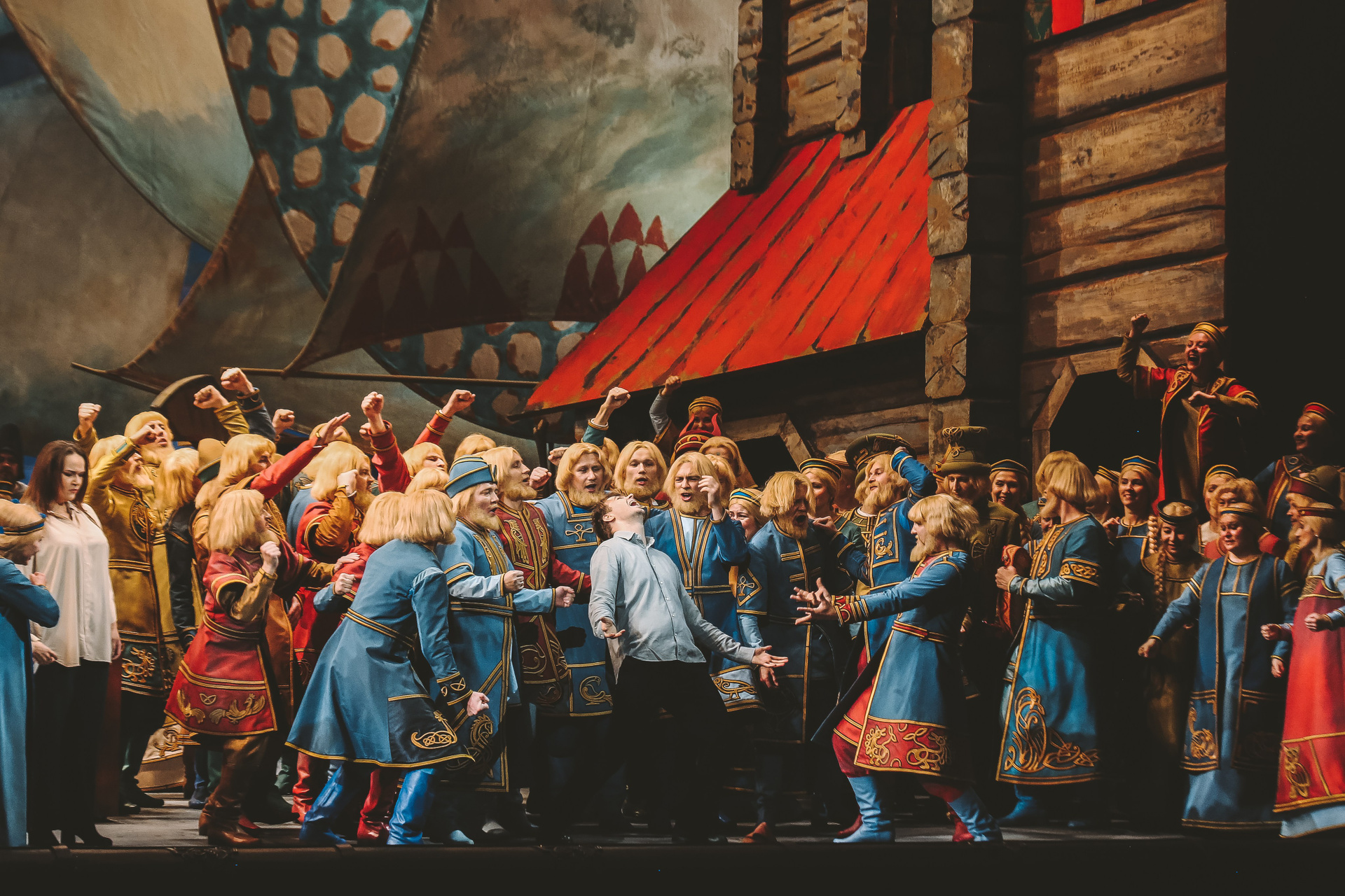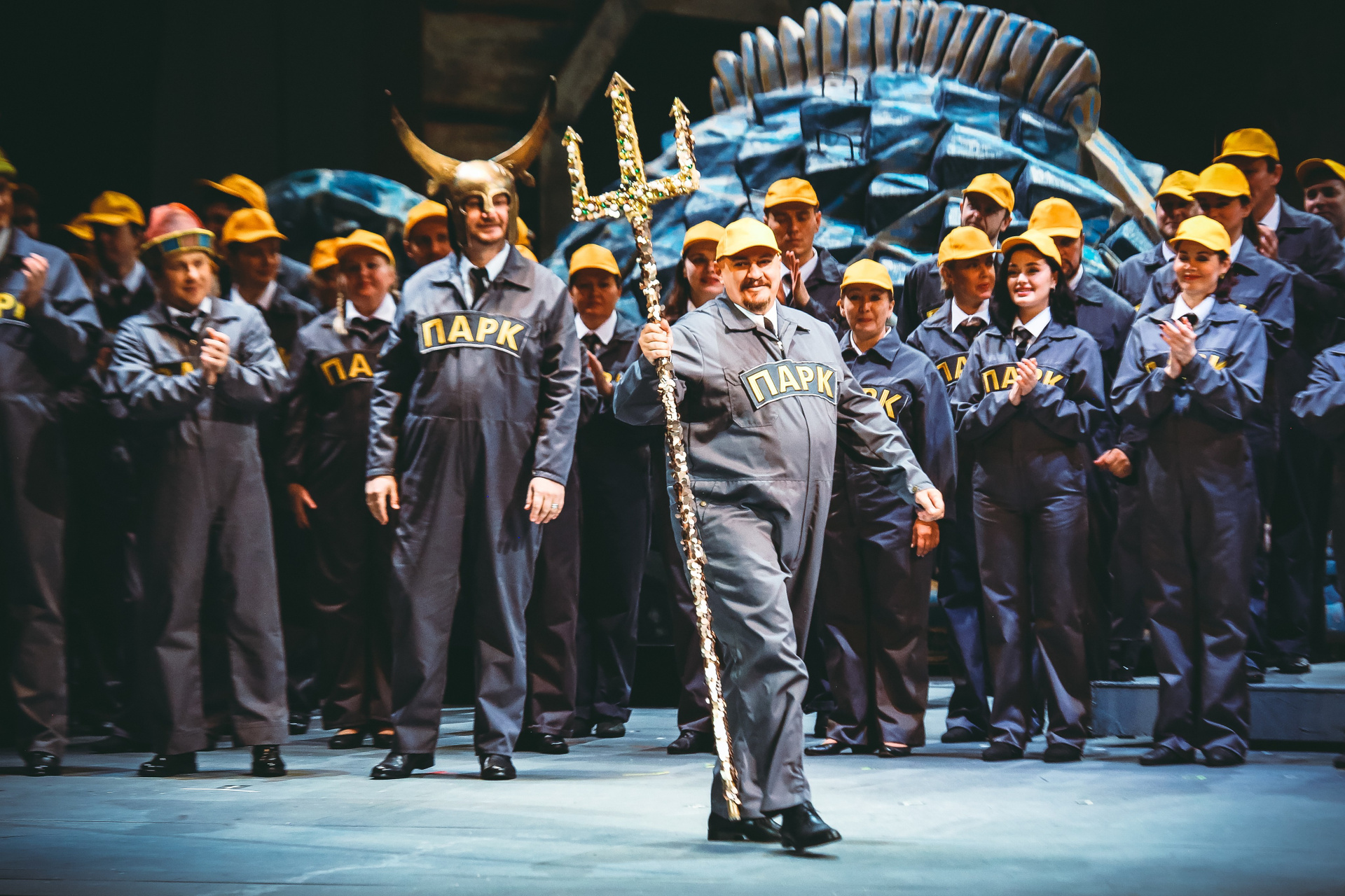 Зато главных героев набралось два состава. Если Екатерина Семенчук и Ксения Дудникова в вокальном и актерском плане выступили одинаково убедительно в роли Любавы, то из двух Волхов ближе мне оказалась Надежда Павлова — более изысканная, эмоциональная (и точно интонирующая), хотя стоит признать, что Аида Гарифуллина очень точно соответствовала необходимому образу гламурной дивы — ей тут даже играть особо не нужно, просто быть собой. Настоящих драматических теноров же, способных осилить требовательную партию Садко, сейчас днем с огнем не сыщешь, но тут, надо сказать, нам повезло: у Нажмиддина Мавлянова из первого состава, незаурядный талант и уникальный голос, будто созданный для данной партии, а Иван Гынгазов взял органичностью и драматическим дарованием, тем более задача была поставлена незаурядная — сыграть человека, который лишь изображает былинного Садко. Так что чутье не подвело Чернякова и позволило ему блестяще использовать типажи всех солистов.