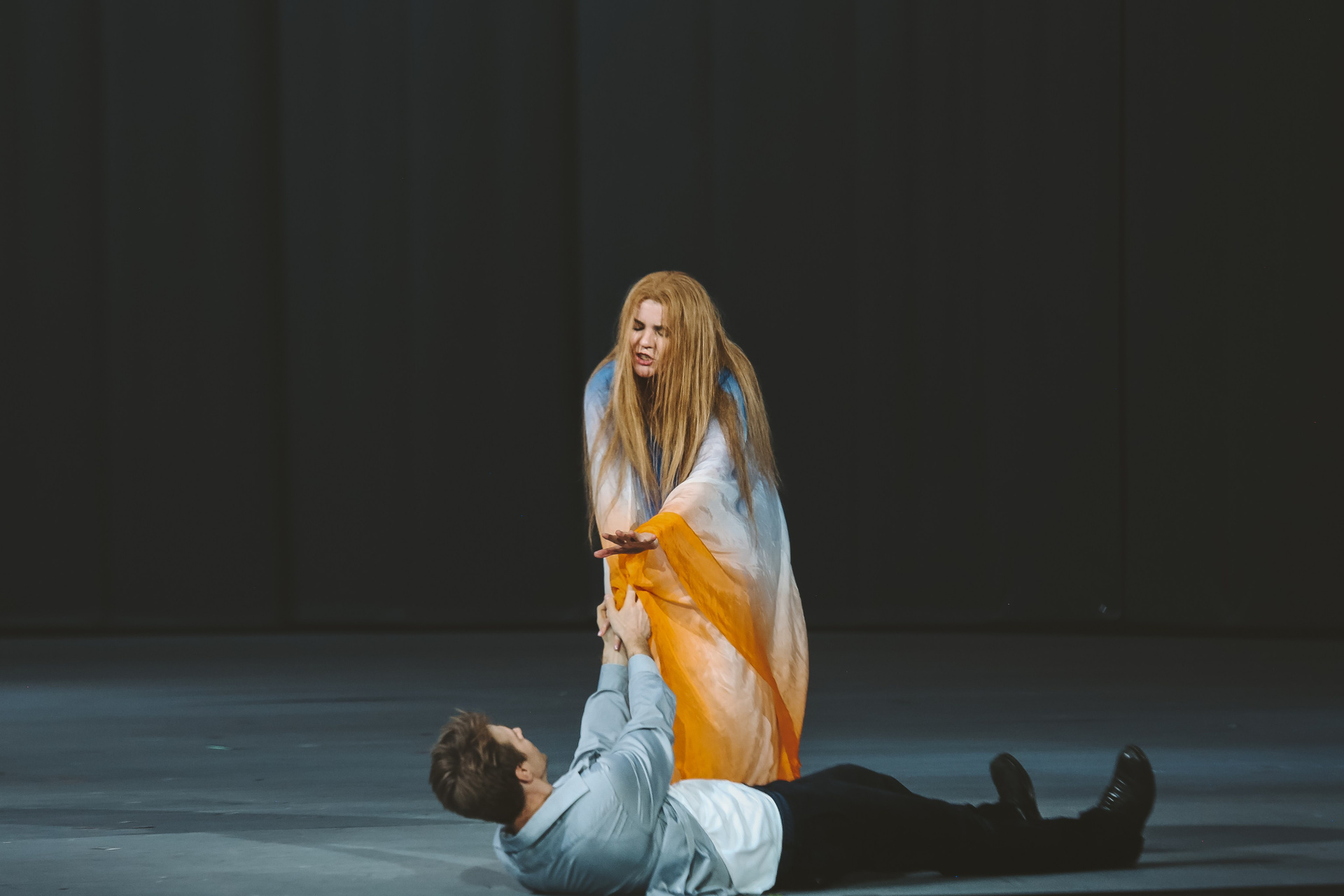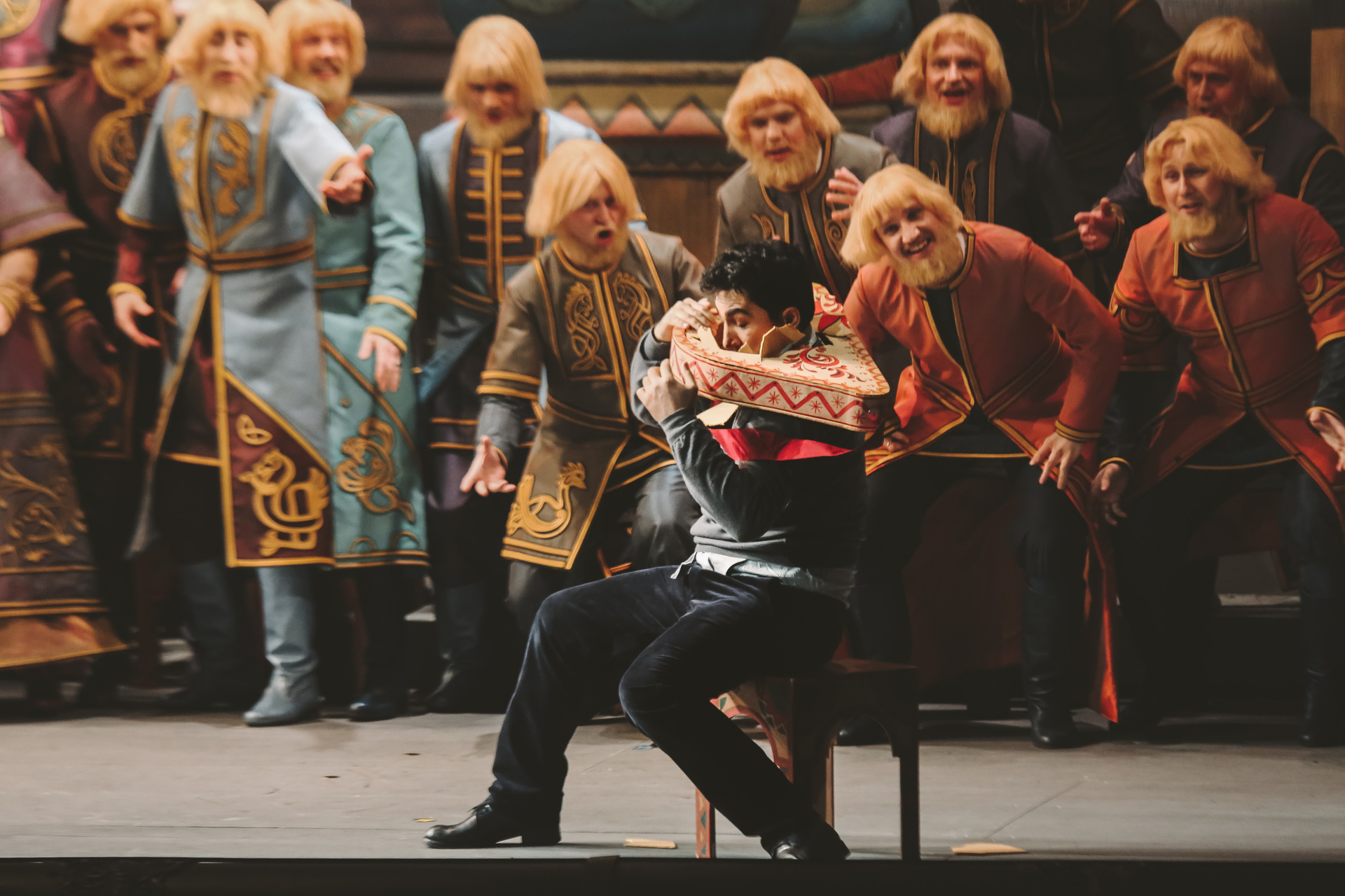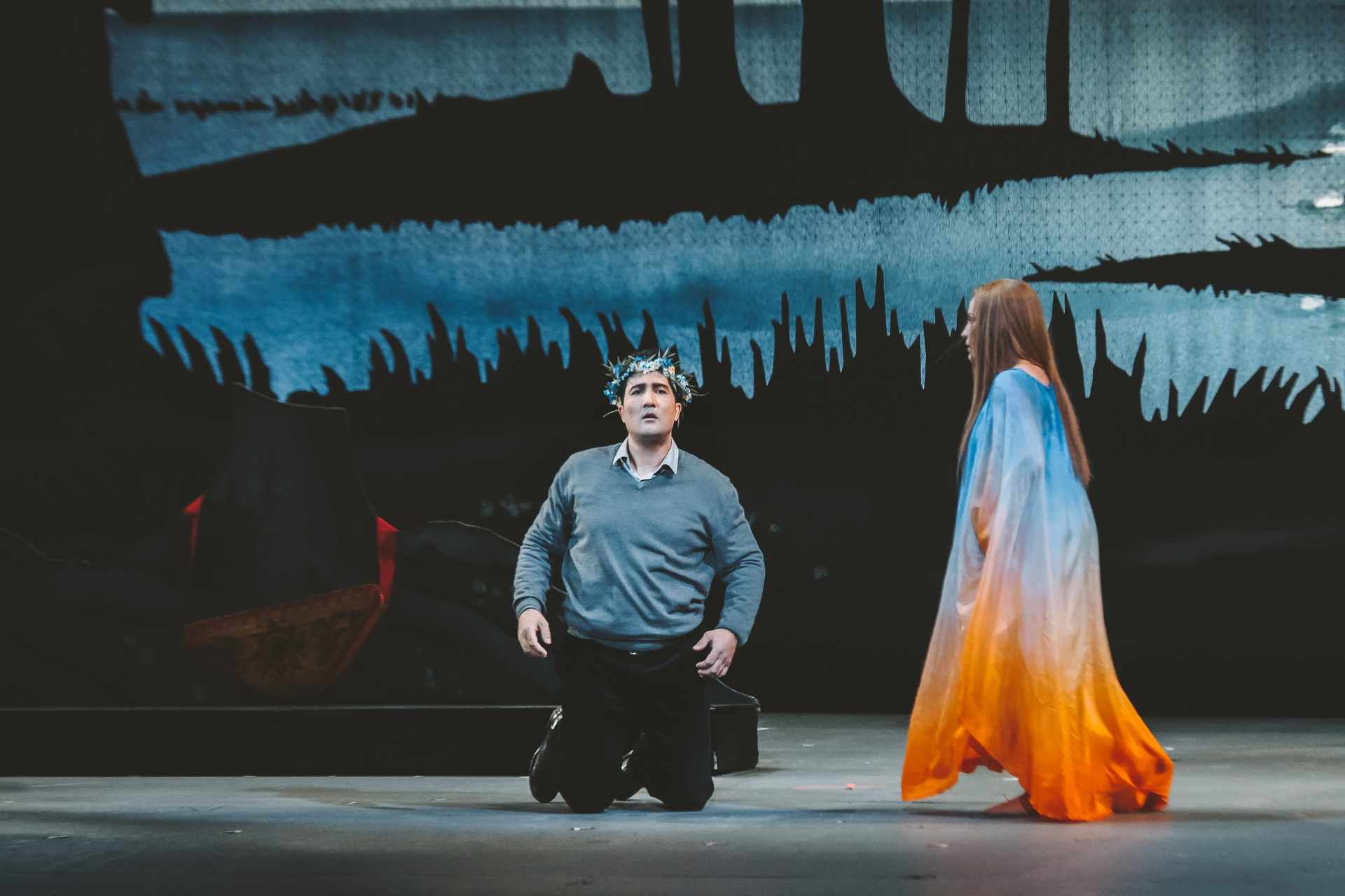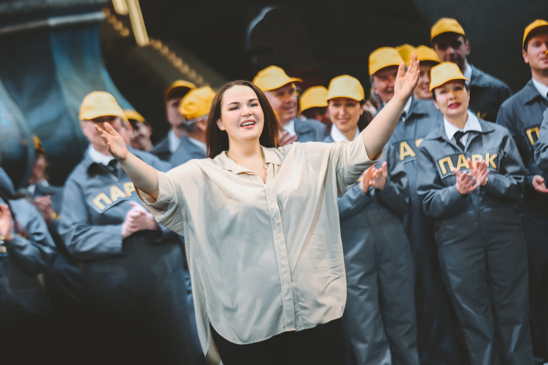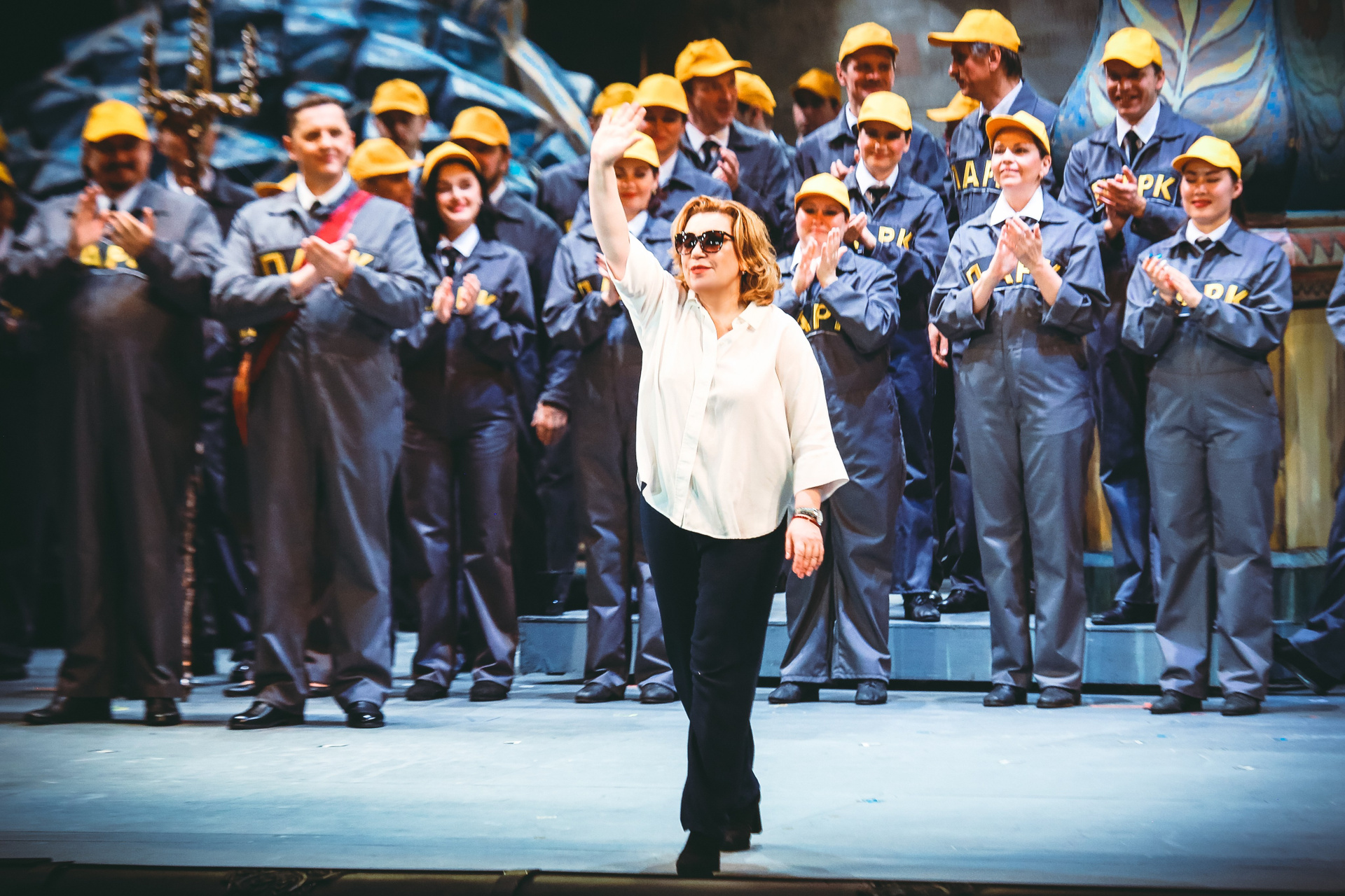 Зато главных героев набралось два состава. Если Екатерина Семенчук и Ксения Дудникова в вокальном и актерском плане выступили одинаково убедительно в роли Любавы, то из двух Волхов ближе мне оказалась Надежда Павлова — более изысканная, эмоциональная (и точно интонирующая), хотя стоит признать, что Аида Гарифуллина очень точно соответствовала необходимому образу гламурной дивы — ей тут даже играть особо не нужно, просто быть собой. Настоящих драматических теноров же, способных осилить требовательную партию Садко, сейчас днем с огнем не сыщешь, но тут, надо сказать, нам повезло: у Нажмиддина Мавлянова из первого состава, незаурядный талант и уникальный голос, будто созданный для данной партии, а Иван Гынгазов взял органичностью и драматическим дарованием, тем более задача была поставлена незаурядная — сыграть человека, который лишь изображает былинного Садко. Так что чутье не подвело Чернякова и позволило ему блестяще использовать типажи всех солистов.