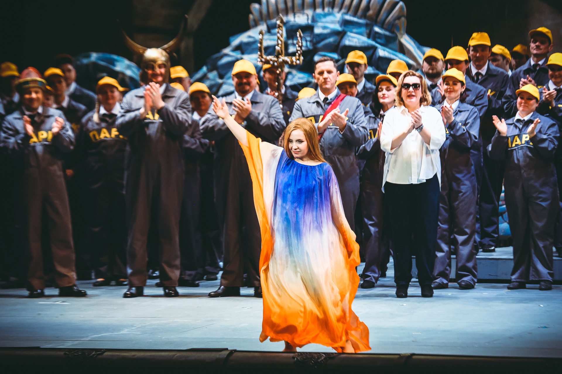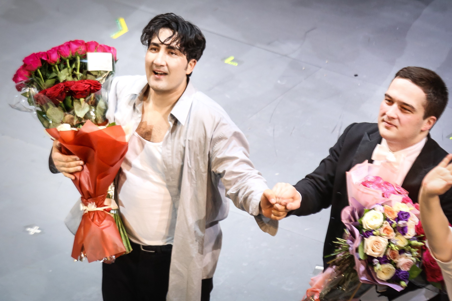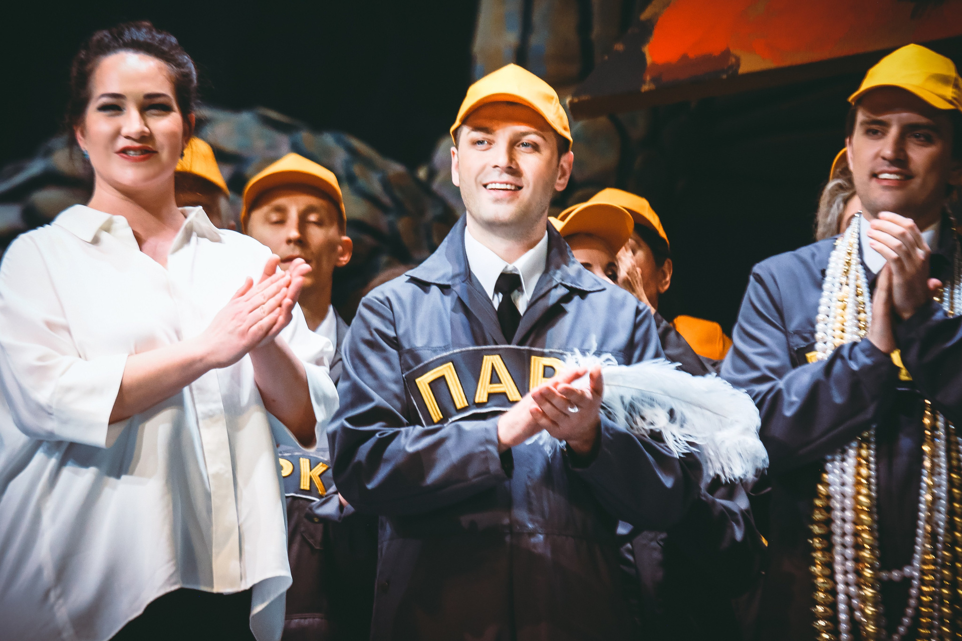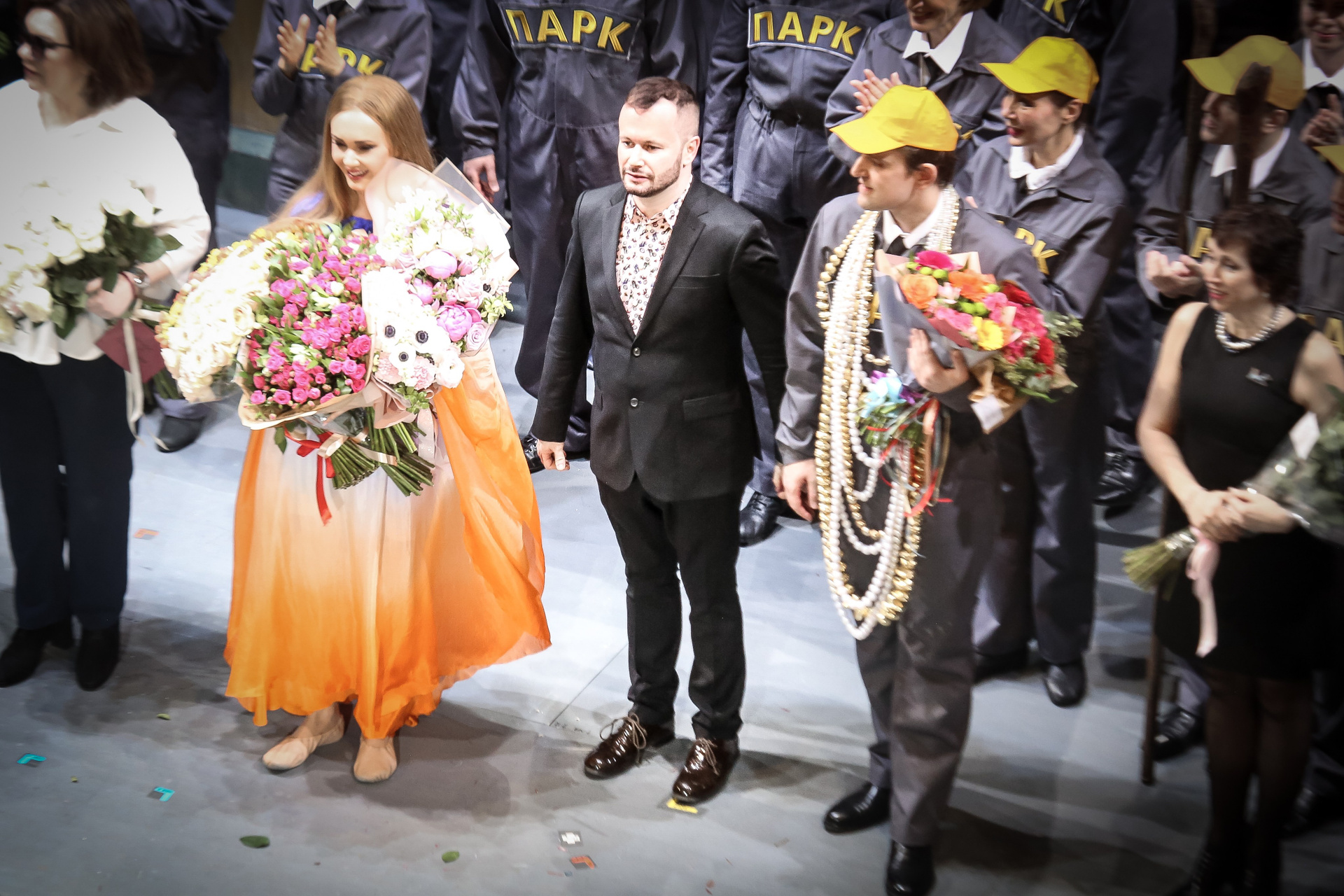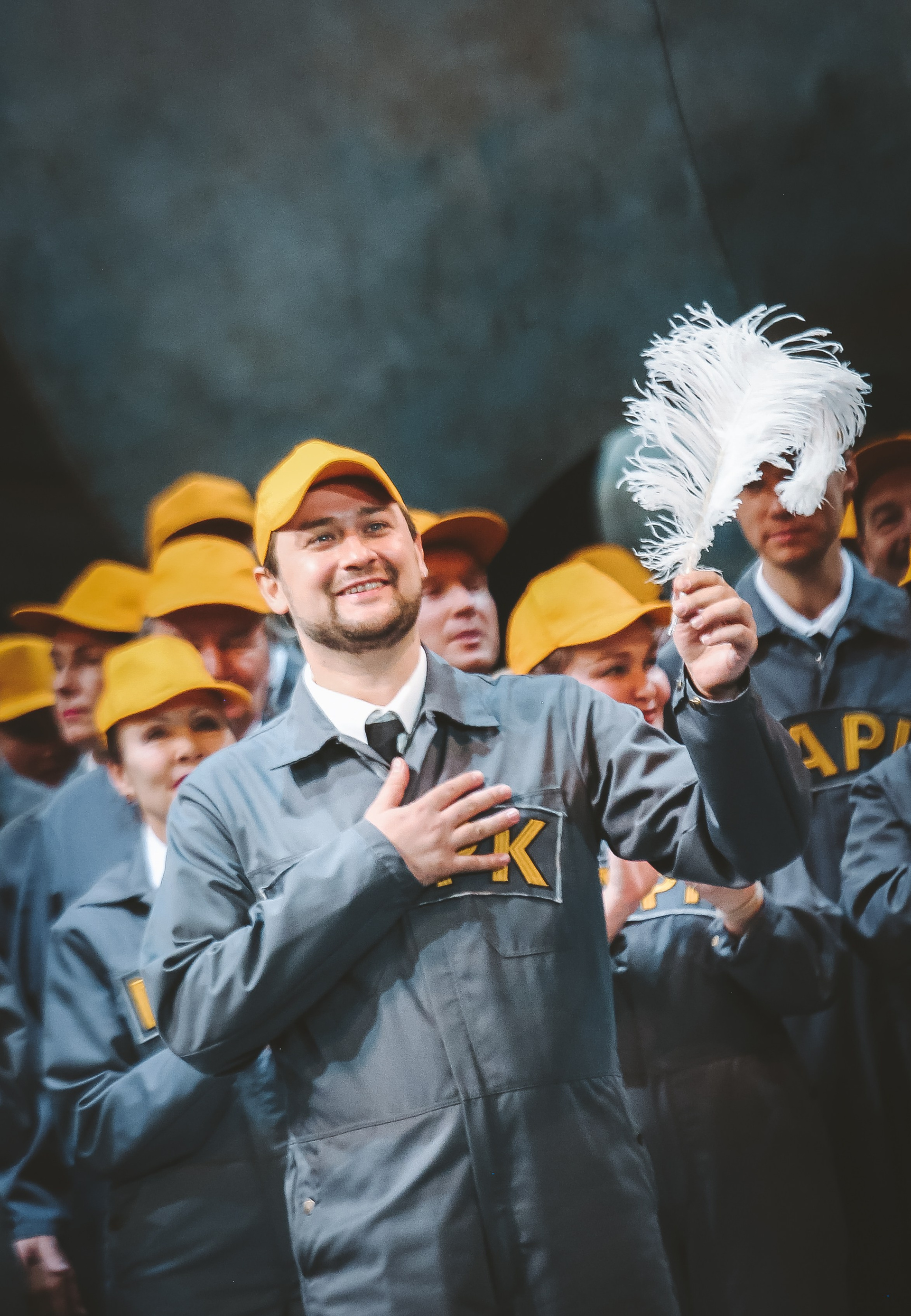 Зато главных героев набралось два состава. Если Екатерина Семенчук и Ксения Дудникова в вокальном и актерском плане выступили одинаково убедительно в роли Любавы, то из двух Волхов ближе мне оказалась Надежда Павлова — более изысканная, эмоциональная (и точно интонирующая), хотя стоит признать, что Аида Гарифуллина очень точно соответствовала необходимому образу гламурной дивы — ей тут даже играть особо не нужно, просто быть собой. Настоящих драматических теноров же, способных осилить требовательную партию Садко, сейчас днем с огнем не сыщешь, но тут, надо сказать, нам повезло: у Нажмиддина Мавлянова из первого состава, незаурядный талант и уникальный голос, будто созданный для данной партии, а Иван Гынгазов взял органичностью и драматическим дарованием, тем более задача была поставлена незаурядная — сыграть человека, который лишь изображает былинного Садко. Так что чутье не подвело Чернякова и позволило ему блестяще использовать типажи всех солистов.
