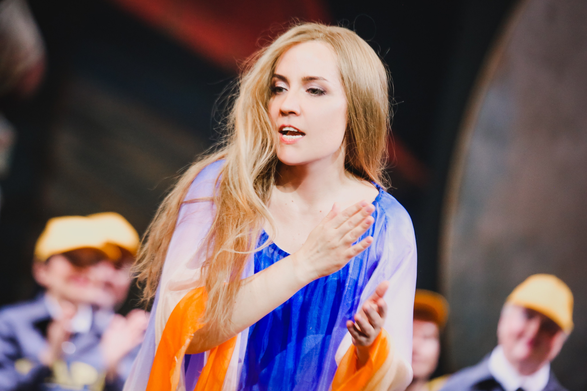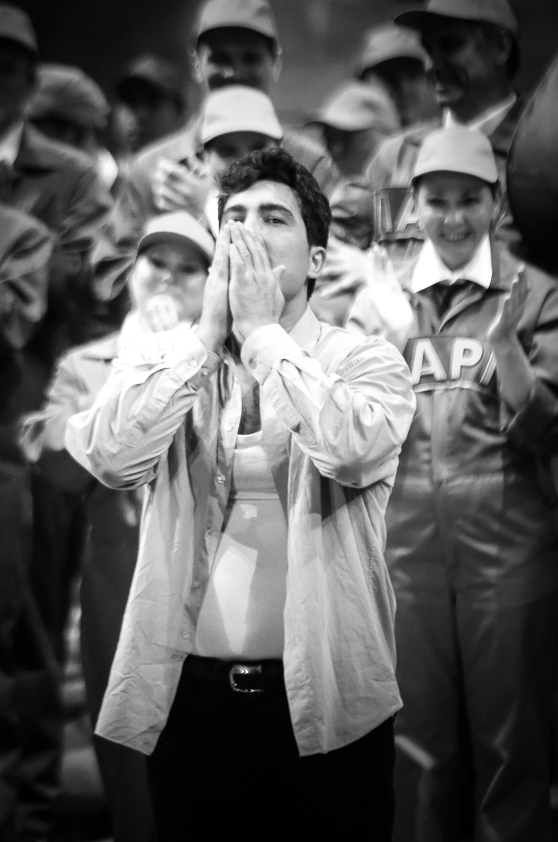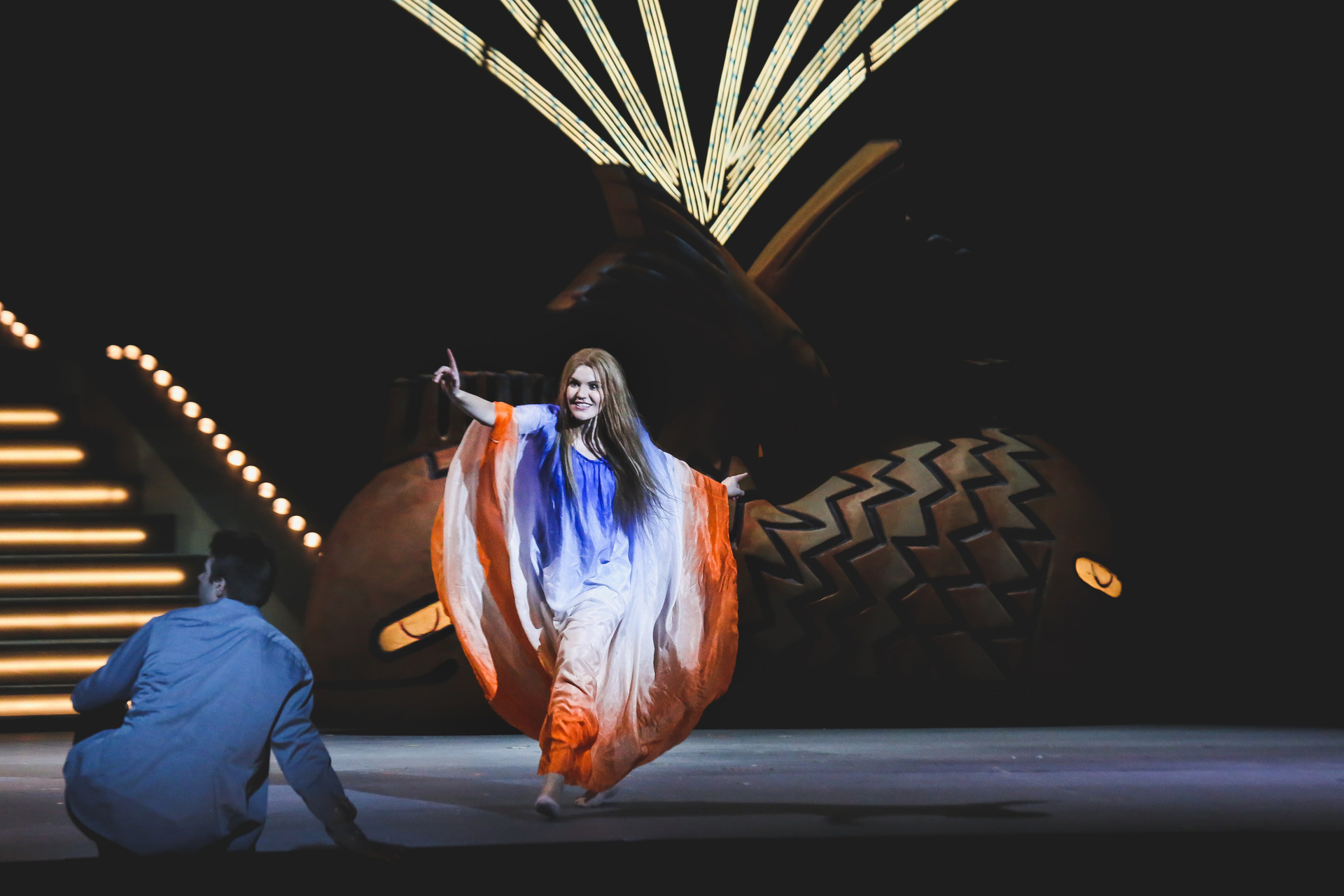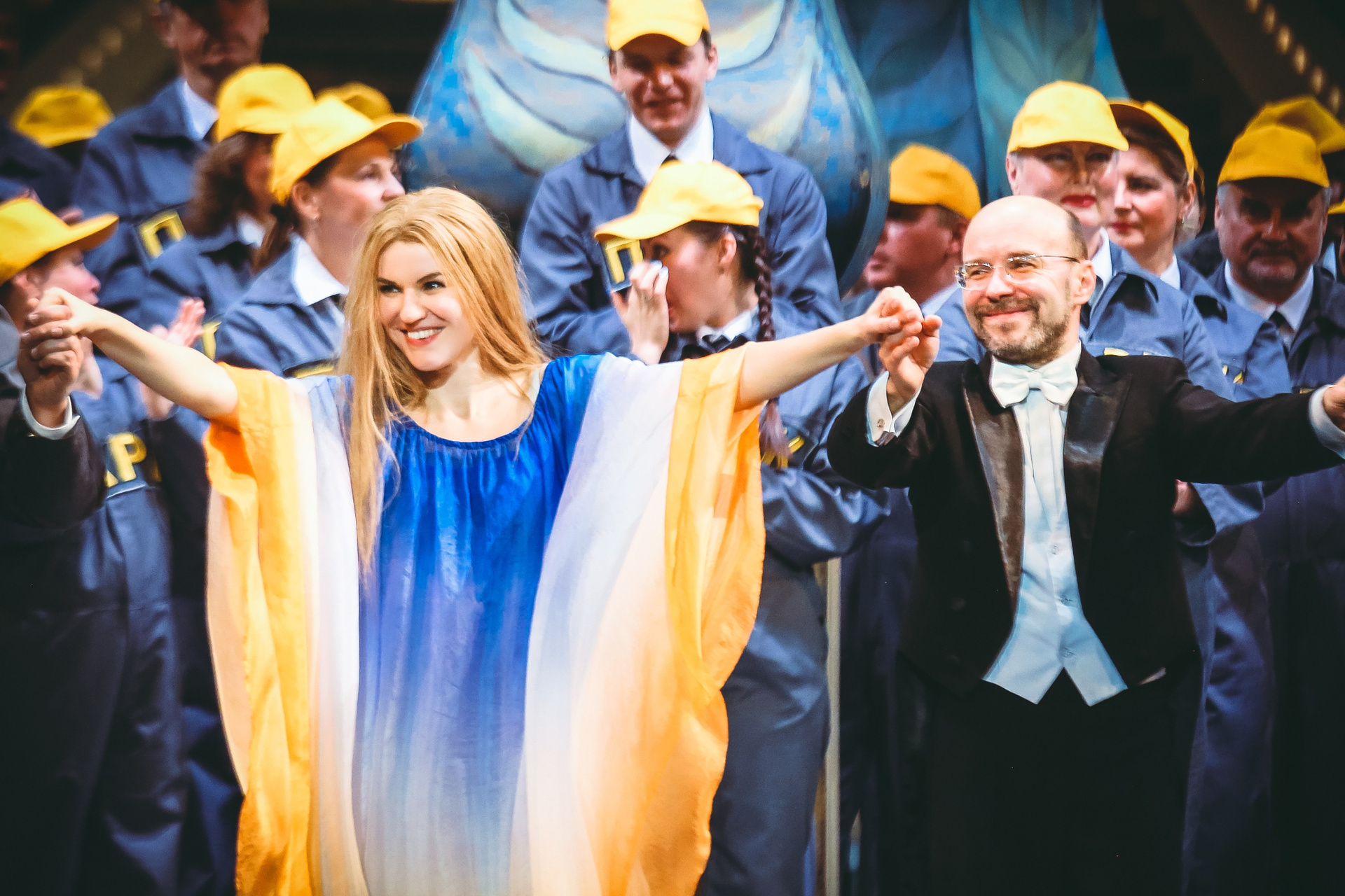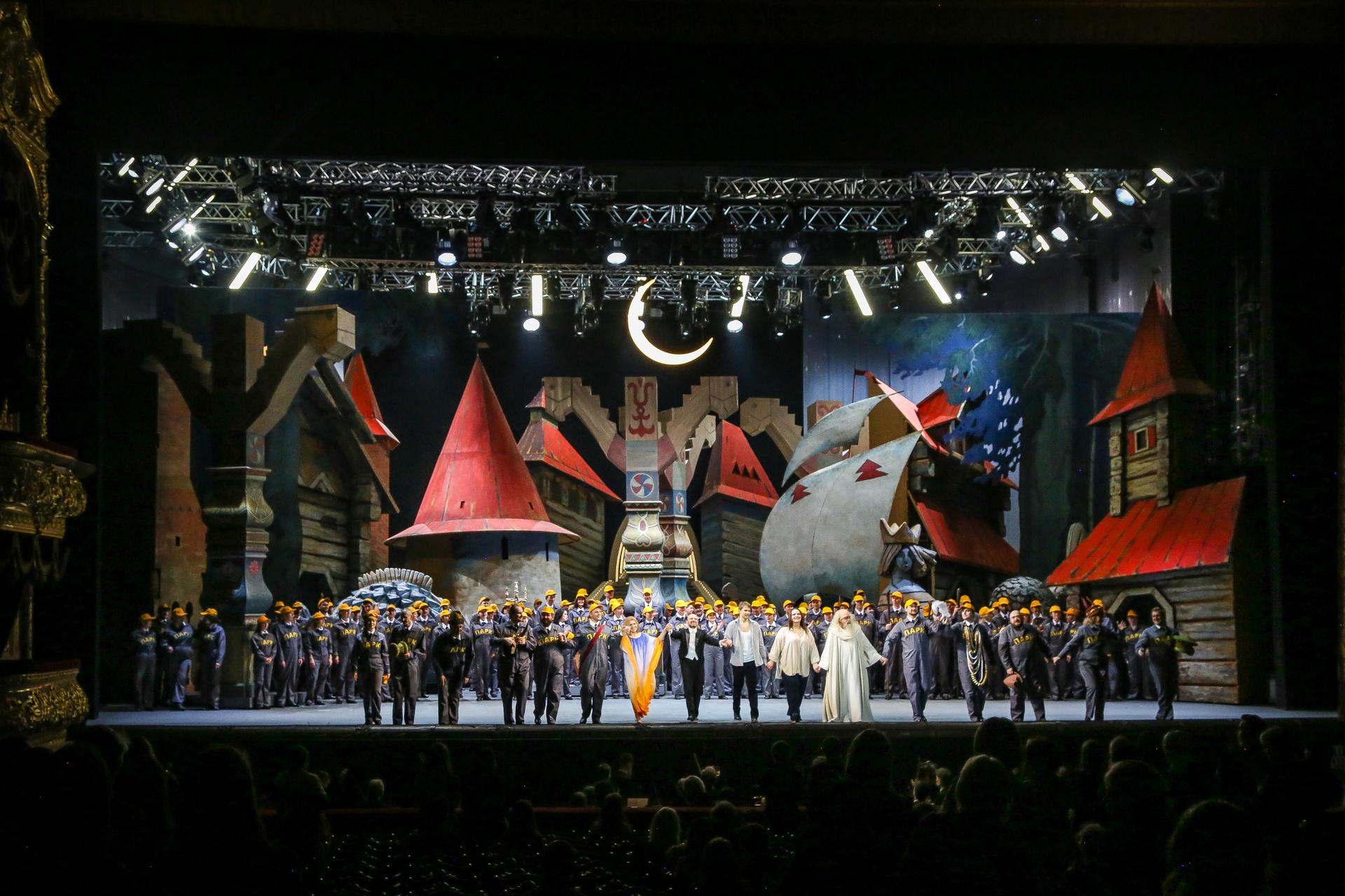 Зато главных героев набралось два состава. Если Екатерина Семенчук и Ксения Дудникова в вокальном и актерском плане выступили одинаково убедительно в роли Любавы, то из двух Волхов ближе мне оказалась Надежда Павлова — более изысканная, эмоциональная (и точно интонирующая), хотя стоит признать, что Аида Гарифуллина очень точно соответствовала необходимому образу гламурной дивы — ей тут даже играть особо не нужно, просто быть собой. Настоящих драматических теноров же, способных осилить требовательную партию Садко, сейчас днем с огнем не сыщешь, но тут, надо сказать, нам повезло: у Нажмиддина Мавлянова из первого состава, незаурядный талант и уникальный голос, будто созданный для данной партии, а Иван Гынгазов взял органичностью и драматическим дарованием, тем более задача была поставлена незаурядная — сыграть человека, который лишь изображает былинного Садко. Так что чутье не подвело Чернякова и позволило ему блестяще использовать типажи всех солистов.