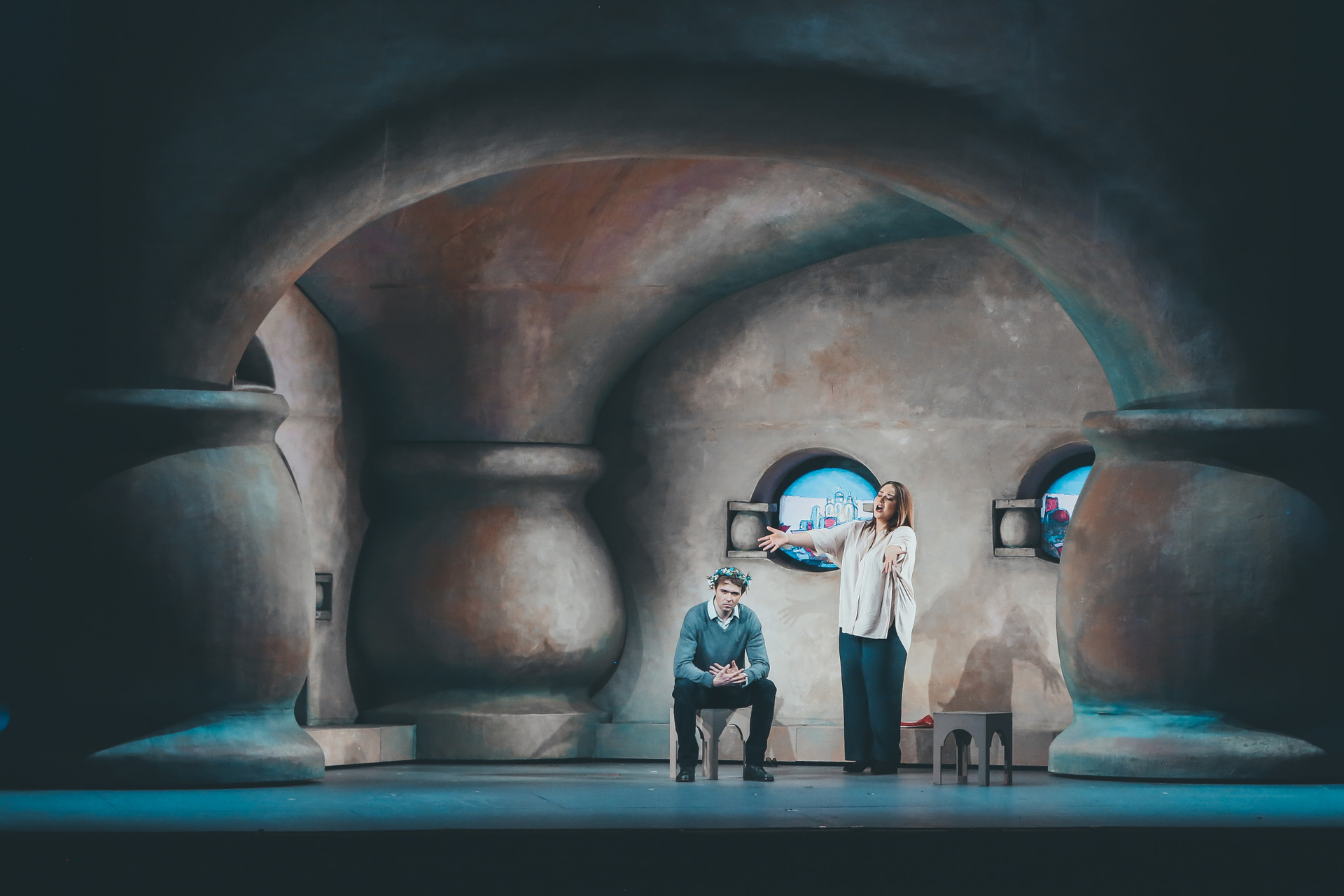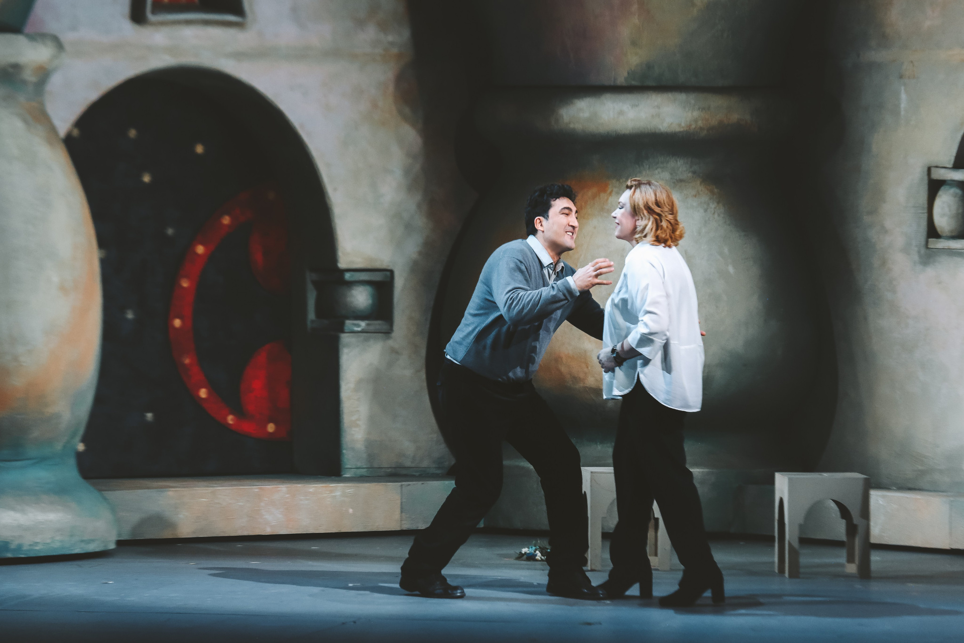 Он ожидаемо изымает из истории всё сверхъестественное, оставив привычный сюжет лишь как психологический инструмент для проявления новых обстоятельств, наделяет персонажей большим количеством измерений, принципиально иными характерами и мотивациями в попытке ответить на ключевой вопрос — как это всё касается нас сейчас. На помощь ему приходят излюбленные методы: психологического реализма, искусства как терапии, театра в театре — этот же характерный прием был использован во многих черняковских спектаклях от «Руслана» до «Обручения в монастыре», но почему-то именно сейчас вызвал нарекания, хотя упрекать художника с узнаваемым творческим почерком в самоповторе почти смешно. Тем более, прием этот реализуется всякий раз по-новому.