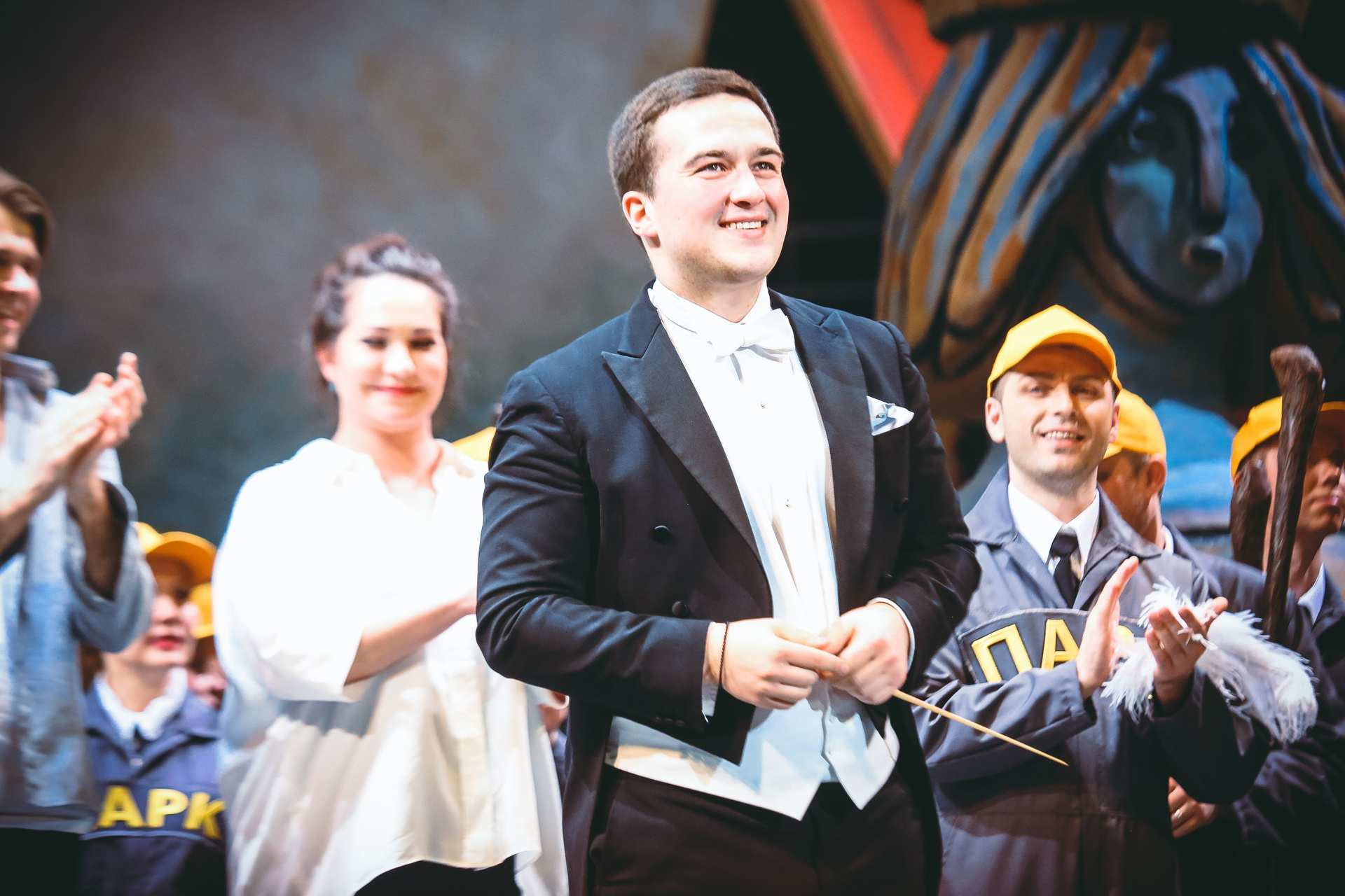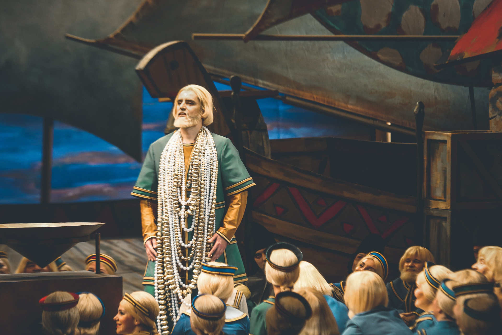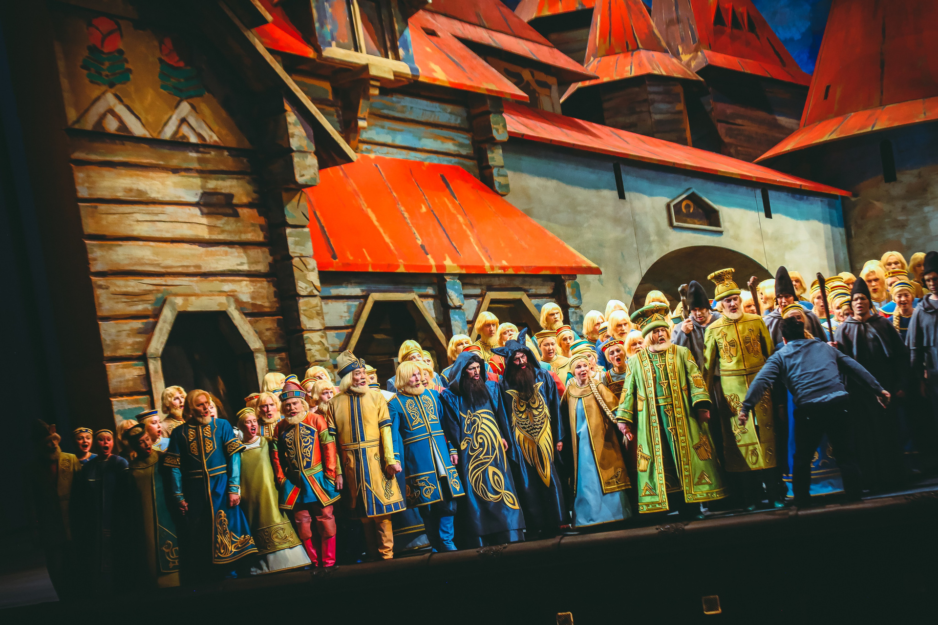 Вся эта смысловая конструкция неожиданно кажется отнюдь не спорной, а довольно прочной и подходящей данному сложно устроенному сюжету. Музыкальная же составляющая более противоречива: во время первых показов было заметно, что вычурный старинный язык непросто дается хору и артикуляция страдает, как заметен и существенный рассинхрон с оркестром. Впрочем, сладить с такой махиной, как «Садко», да еще с огромным количеством движущихся артистов, не всегда могут и прославленные, умудренные многолетним опытом маэстро, тем более непросто пришлось молодому дирижеру Тимуру Зангиеву, однако некоторые технические недочеты компенсировались красочным прочтением, нужным градусом драматизма и общей музыкальностью, да и к третьему спектаклю звучание в целом выровнялось.