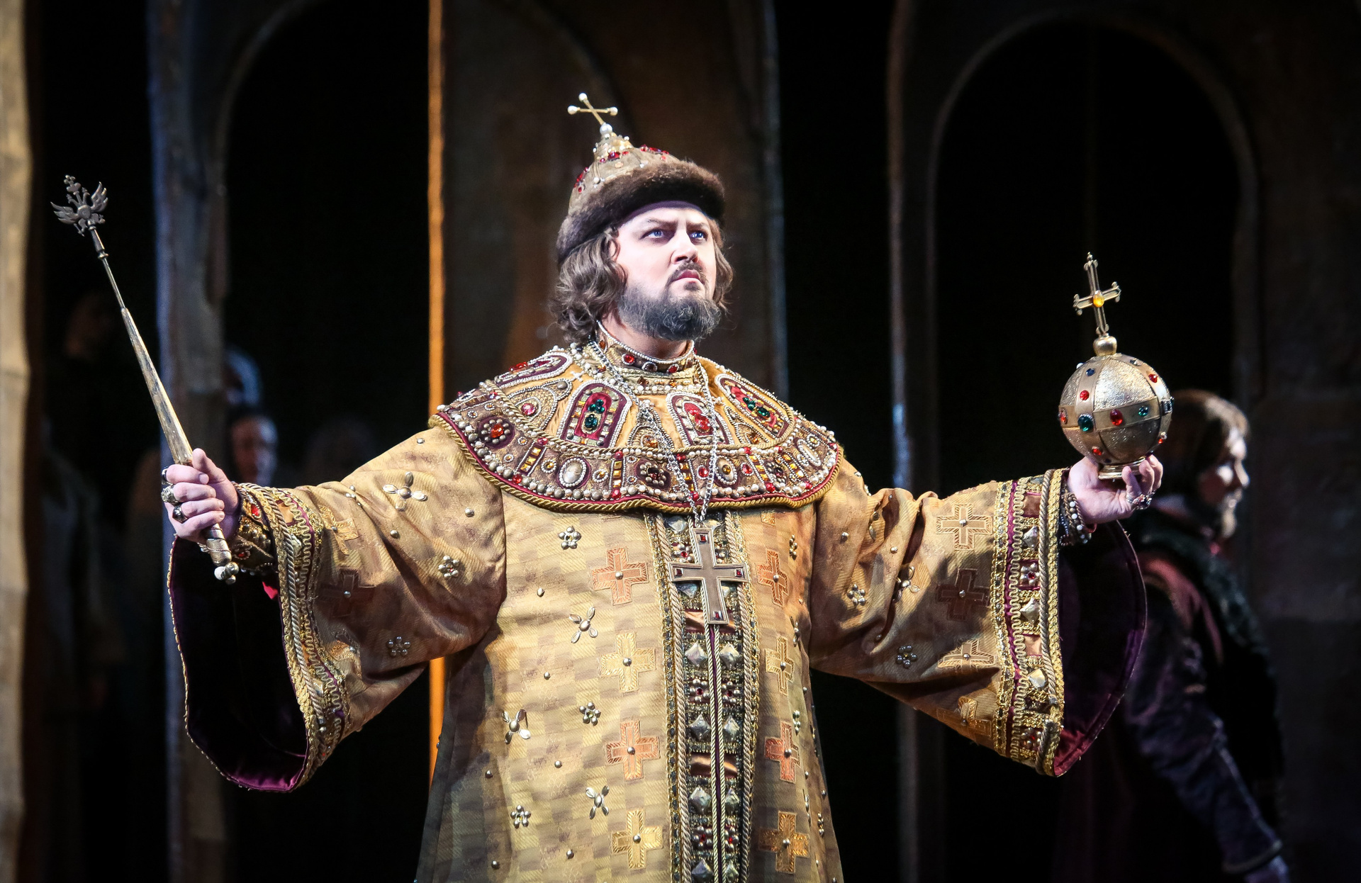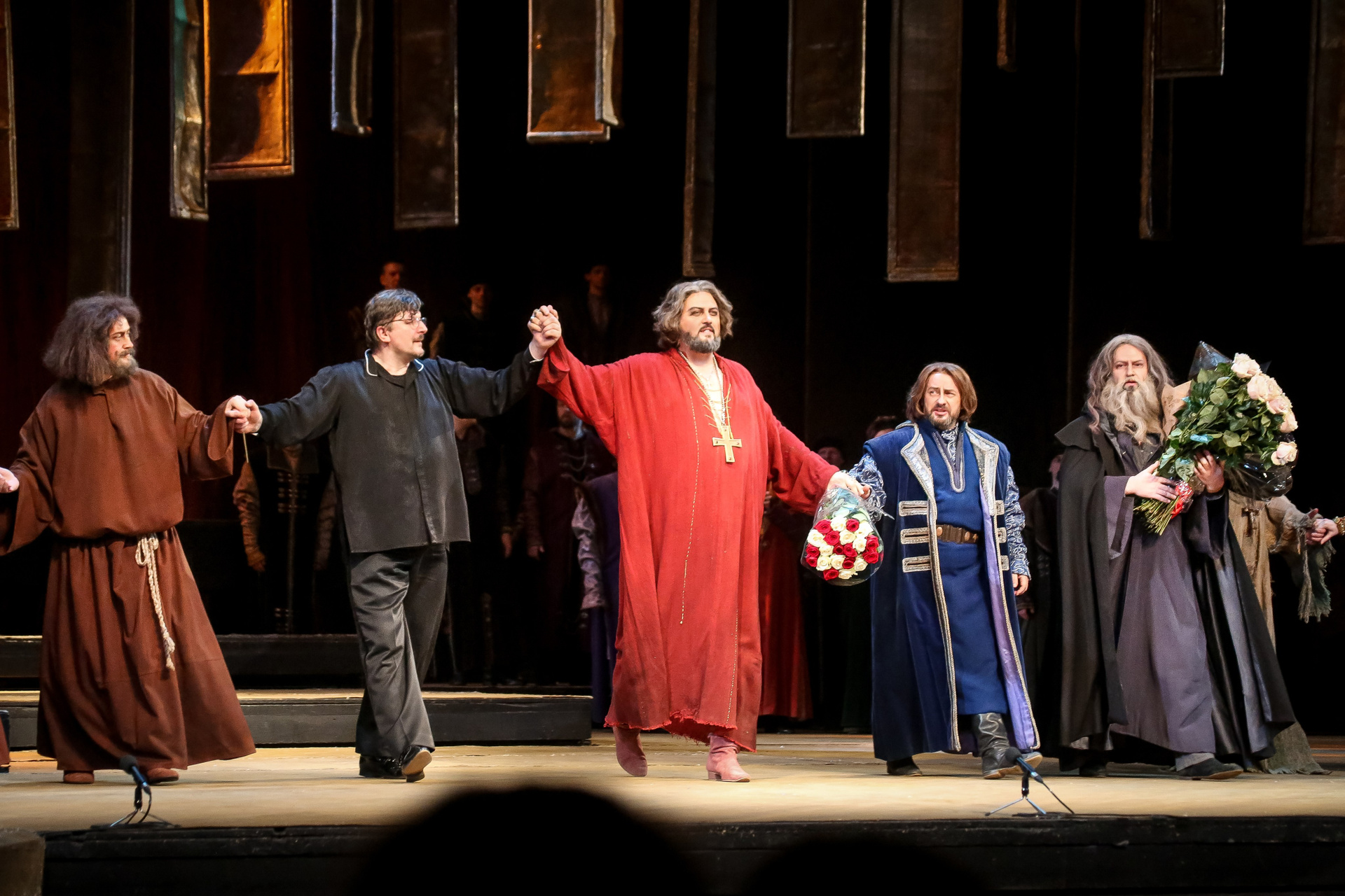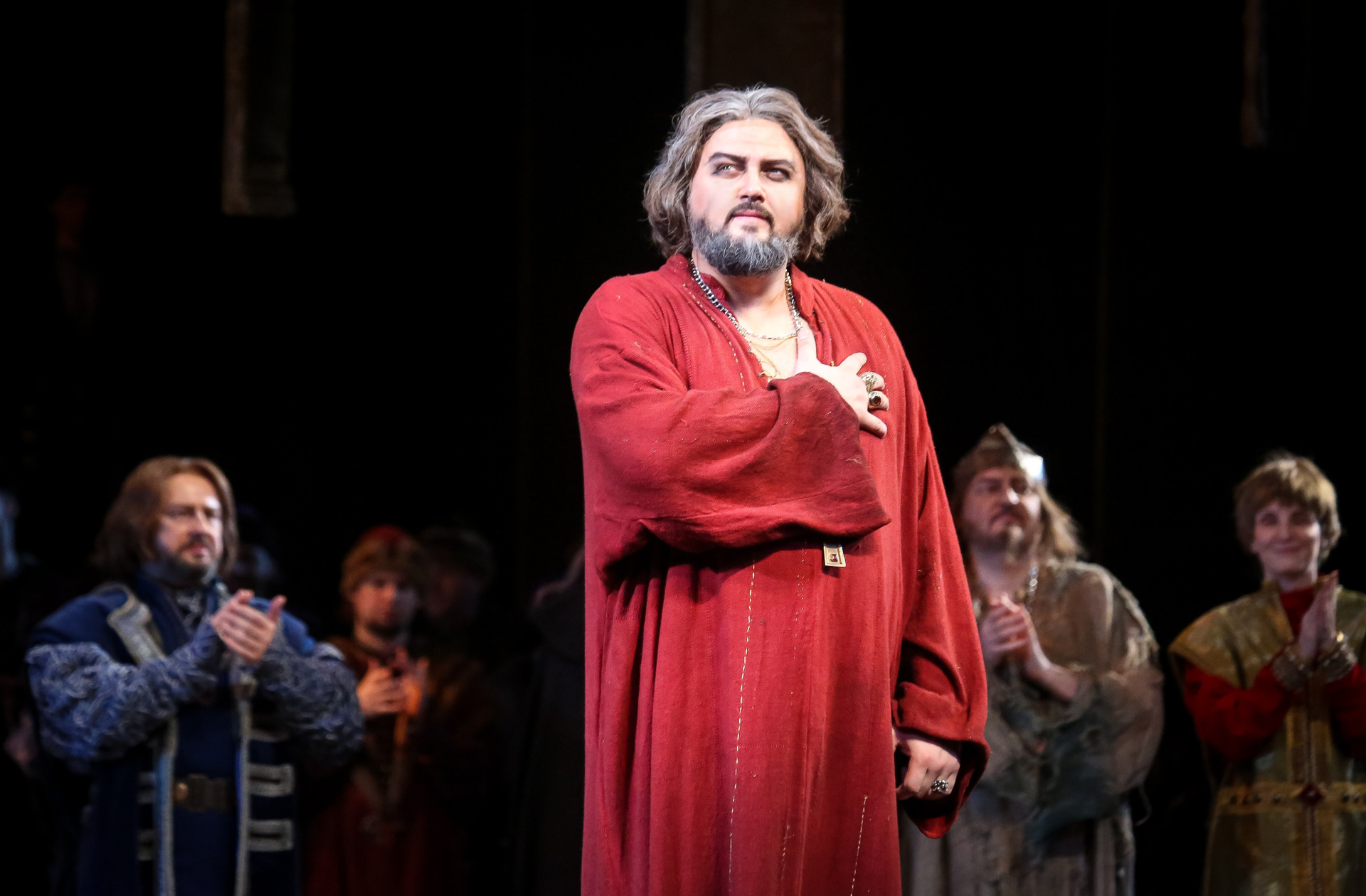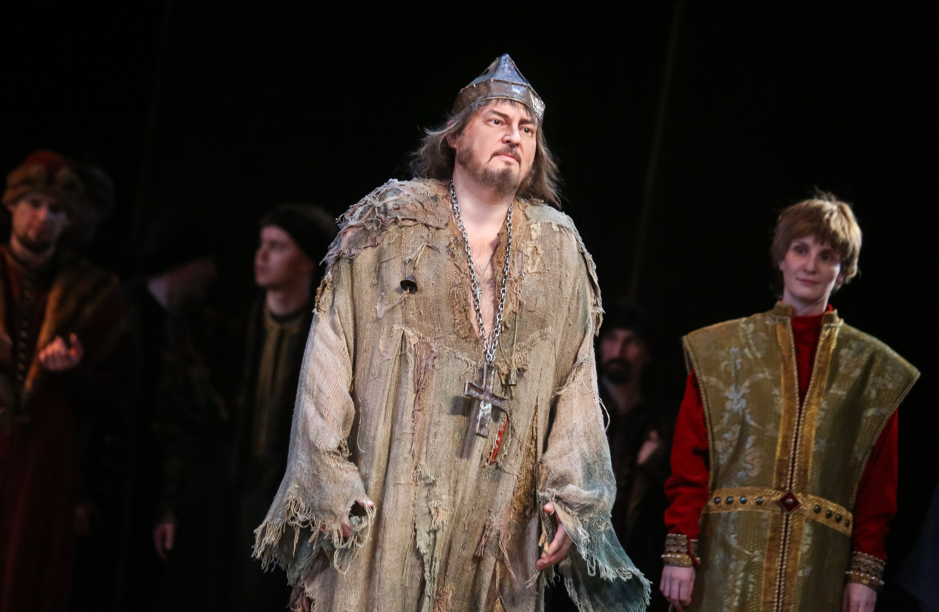 Еще одна работа Новой оперы, которая, как и недавно обсуждавшаяся «Аида», творится именно артистами на сцене (и конечно, оркестром в яме) и существует благодаря им, это «Борис Годунов» — кстати, старожил театра, ставший первой премьерой на новой сцене в саду «Эрмитаж» уже больше двадцати лет назад.