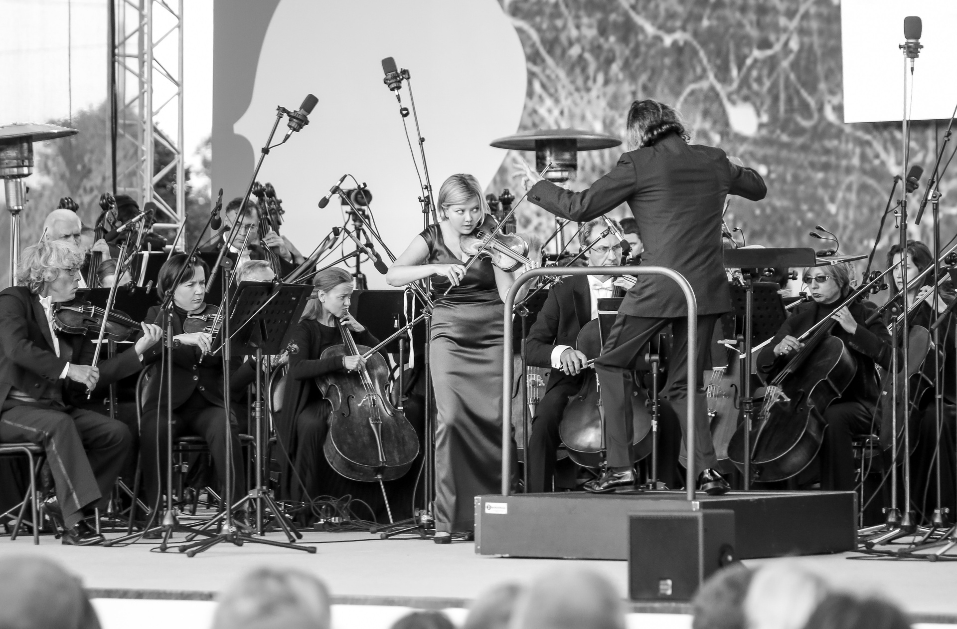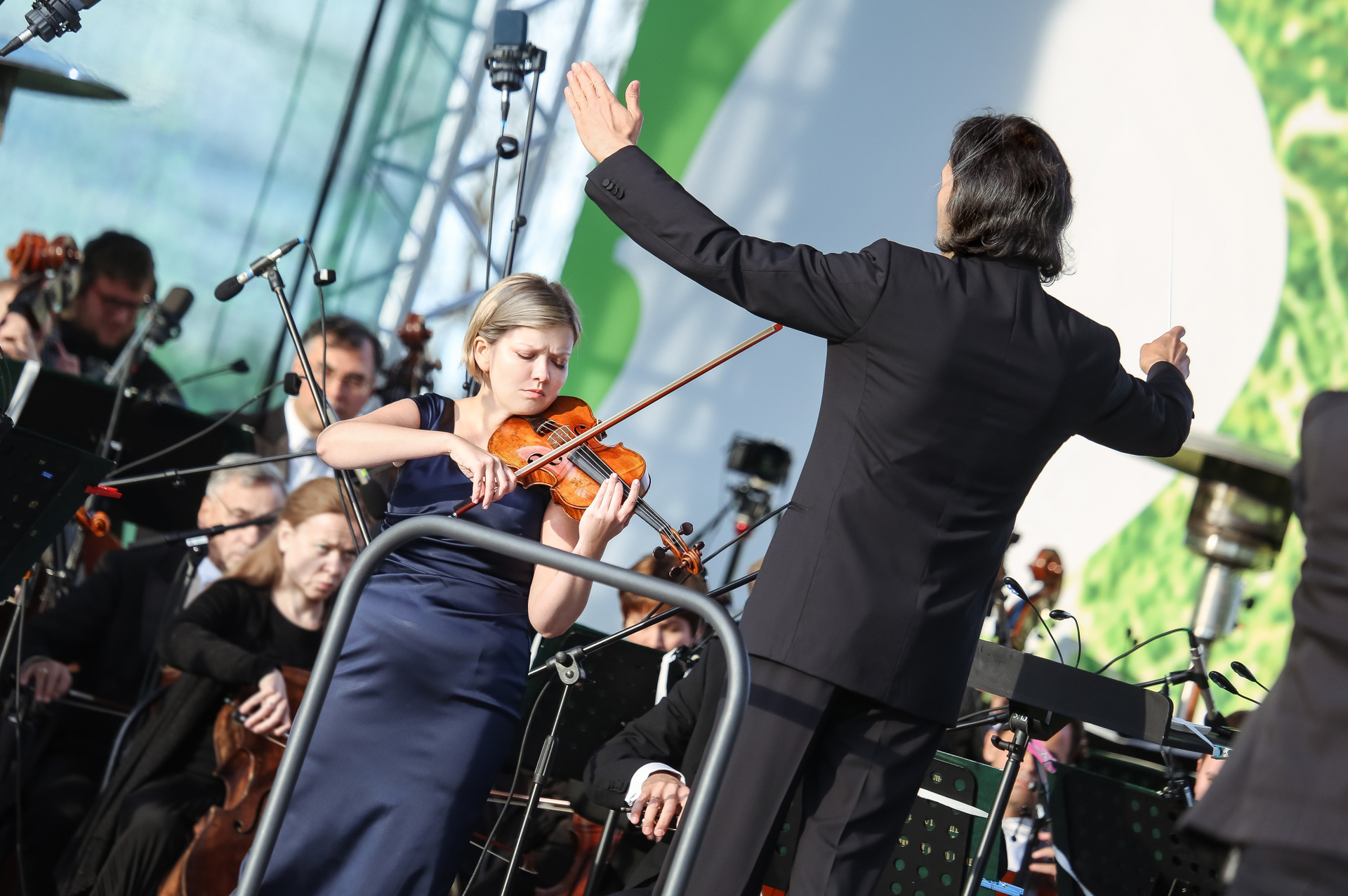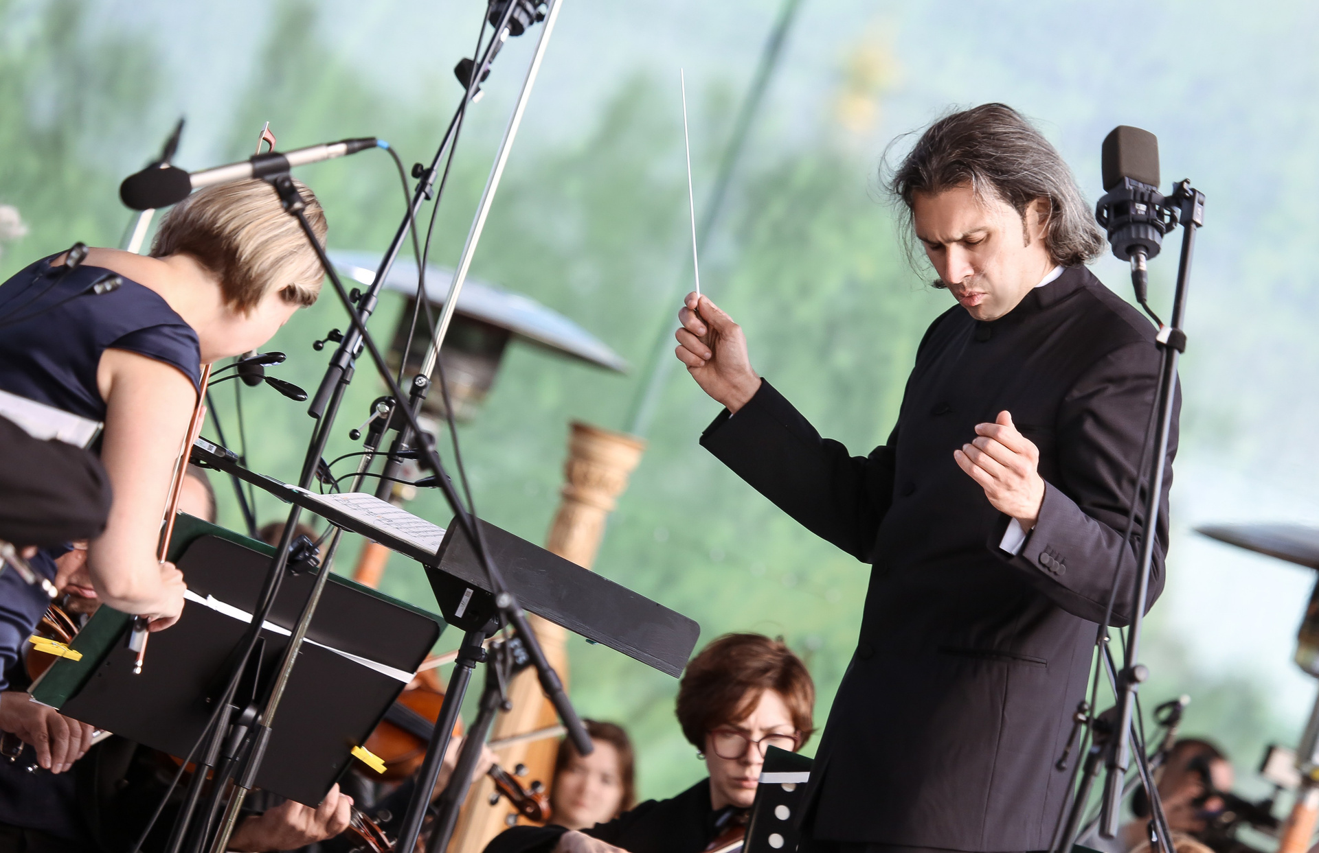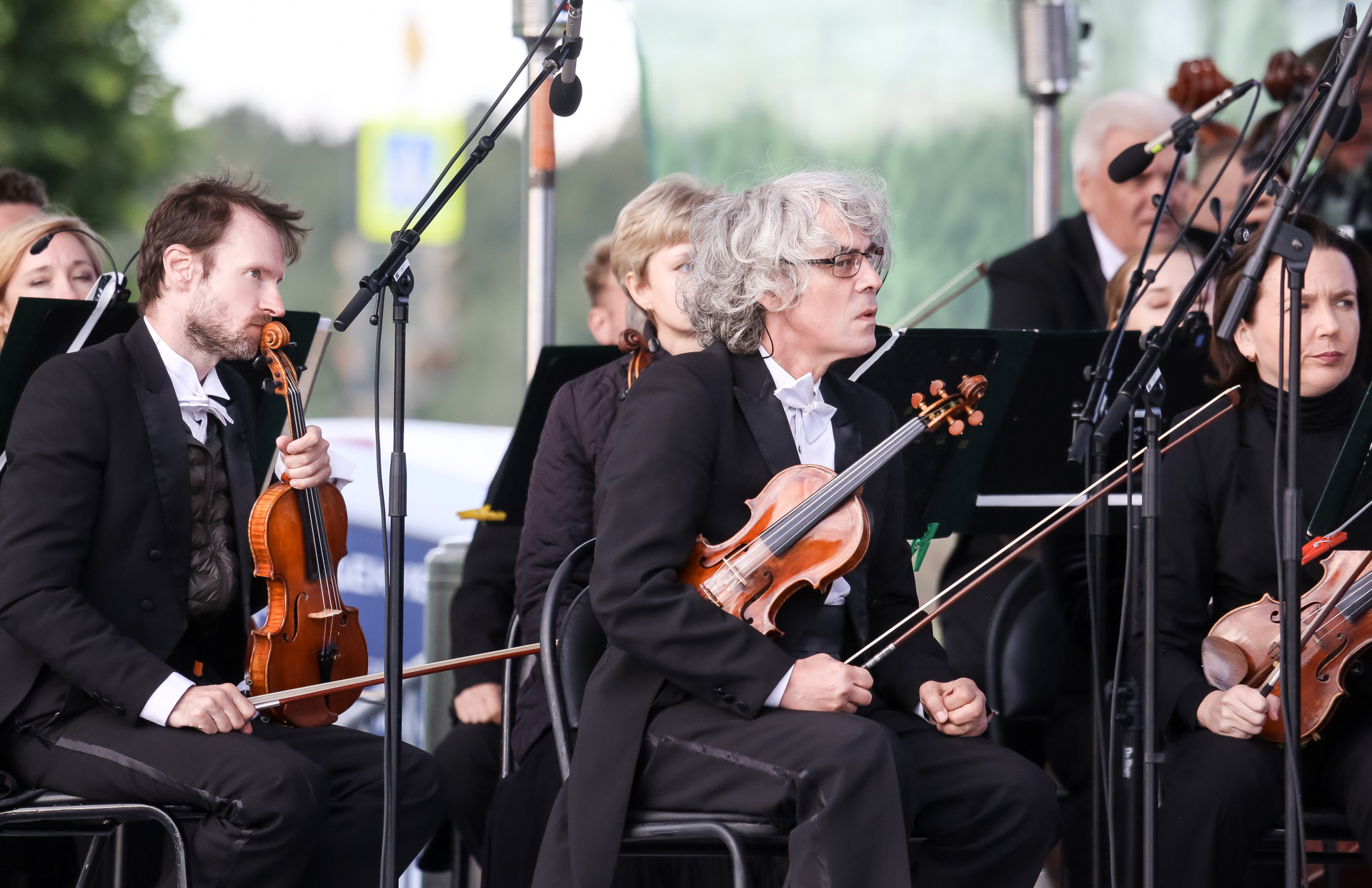 Впрочем, увлеченные зрители и на перекладных поедут, и готовы даже на земле сидеть, чтобы послушать музыкантов мирового масштаба. Хоть формат настраивает на расслабленность, однако давно уже опровергнуто мнение, что опен-эйр не слишком подходит для серьезной музыки. Акустические особенности вполне решаются дотошно выстроенной подзвучкой (разве что солирующую скрипку порой хотелось немного «поднять» в мониторах). Конечно, окружающие явления и звуки неизбежно вторгаются в действие, но порой это происходит настолько эффектно и вовремя, словно так и было задумано: грозовые тучи, набежавшие аккурат к финалу симфонии Малера в первый вечер, или звон колоколов монастыря в ключевой момент концерта Шостаковича 6 июля.