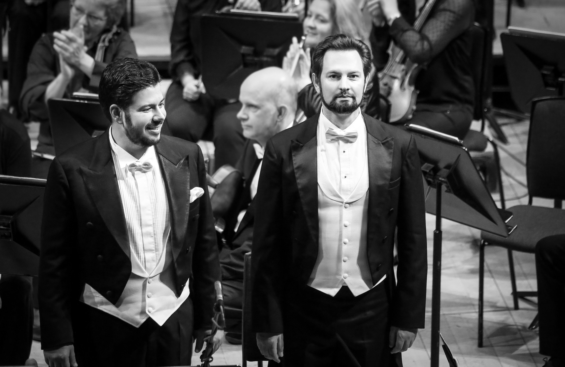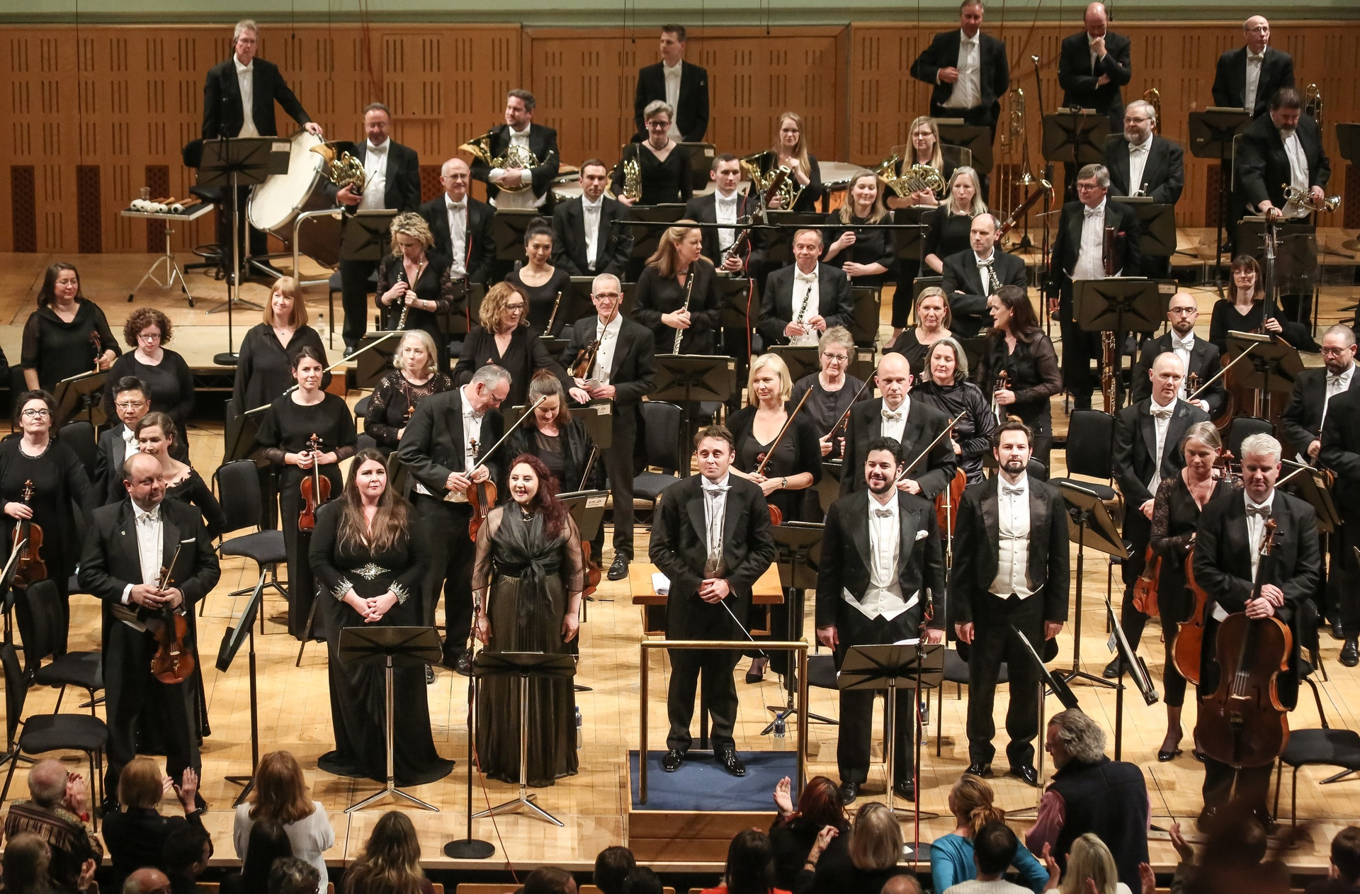 При подобных вводных от солистов требуются не только по-оперному красивые и яркие голоса, но также умение разглядеть за всеми красивостями суть. И эти чаяния полностью оправдал великолепный международный квартет — американское сопрано Анджела Мид, меццо из Албании Энкелейда Шкоза, тенор-итальянец Антонио Поли и русский бас Евгений Ставинский. Заведомого хэдлайнера тут не было, но каждый стал драгоценным украшением ансамбля (комплименты также организаторам концерта, сумевшим собрать такую команду).