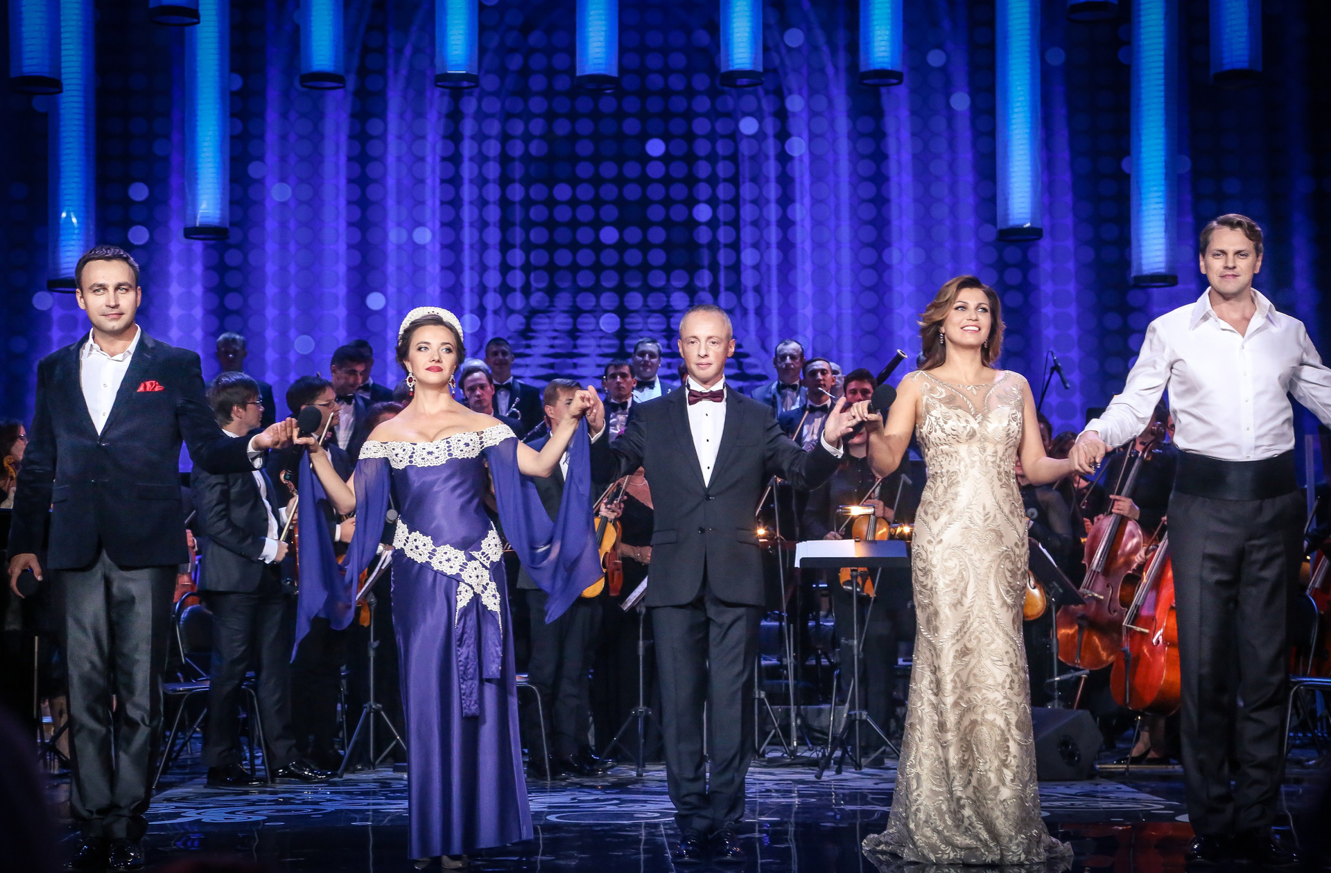 Хотя не везде царило такое единообразие — все-таки время стояло смутное, парадоксальное, потому и музыка его была на все лады: романс соседствовал с фокстротом, танго — с маршем. Не оттого ли на данном концерте выступали солисты, работающие в столь разных направлениях: оперная певица Екатерина Лёхина — обладательница премии Grammy и хрустального лирико-колоратурного сопрано; популярный мюзикловый артист — харизматичный Иван Ожогин, переигравший все знаковые и зловещие роли — Призрака Оперы, Воланда, графа фон Кролока в «Бале вампиров». Народный голос был представлен прекрасной Майей Балашовой, выделяющейся, как мне кажется, среди многих фолк-певиц своим красивейшим тембром и чрезвычайно убедительной артистичностью, с которой она не просто поет, но играет каждое произведение. И конечно, совершенно невозможно было бы представить эту передачу без солистки, которая все свое творчество, невероятный талант и саму жизнь посвятила служению романсу — Нина Шацкая просто заворожила зал своей необычайной красотой (Кармен, Наина и Любаша в одном лице!) и таким же голосом с особенными красками, в которых — чарующая тьма. А что касается баритона Владислава Косарева, тут я даже сомневаюсь, можно ли его однозначно «закрепить» за конкретным жанром — скорее он артист универсальный, виртуоз малых форм в самых разных музыкальных направлениях — оперетте, романсе, народной песне, эстраде 20-го века. Потому, наверное, и репертуар в этом концерте ему достался наиболее разноплановый — грозный марш сибиряков, чувственный романс «Две розы», а также легкомысленный, судорожно-ритмичный фокстрот «Джон Грей», и в каждом произведении ему удалось подчеркнуть уникальный характер, радикально меняя не только образ с настроением, но даже вокальную манеру.