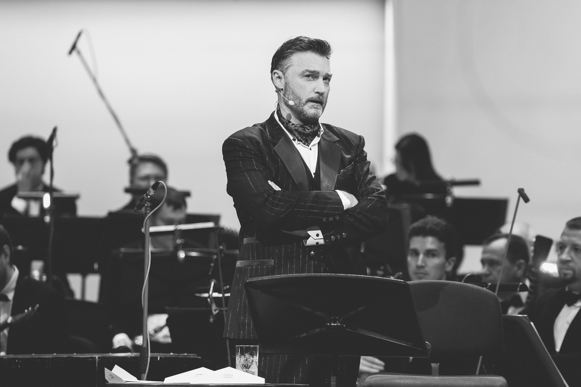 Впрочем, переиначивая пословицу, хоть начали за упокой, однако ж закончили вполне себе за здравие, снизив общий градус драматизма. И как сменяют друг друга танцы в строгом бальном церемониале, так же чередовались литературные и музыкальные произведения, вступая между собой в диалоги и образуя пары: цитаты из «Онегина» — с полонезом Чайковского из одноименной оперы, «Разговор во время мазурки» Евдокии Ростопчиной — с мазуркой Глинки из «Сусанина», бравурная «Гусарская исповедь» Дениса Давыдова — конечно же, с Военным маршем из свиридовской «Метели», а макабрический «Бал» Одоевского — со схожим по настроению вальсом Хачатуряна из «Маскарада». Кульминацией же стало автобиографичное стихотворение Алексея Константиновича Толстого «Средь шумного бала», вынесенное в заглавие концертной программы, — естественно, под мелодию одного из самых известных романсов Чайковского на данный текст. В принципе, на такой ноте вполне можно было бы завершить программу, однако под конец эта густая лирика вдруг оказалась разбавлена озорным призывом поэта-сатирика Василия Курочкина «Пляши, о град Петра, пляши!» в сопровождении столь же легкомысленного «Адского галопа» Оффенбаха — неизбывно провоцирующего «хлопательный рефлекс», потому в некотором смысле идеального на уход.