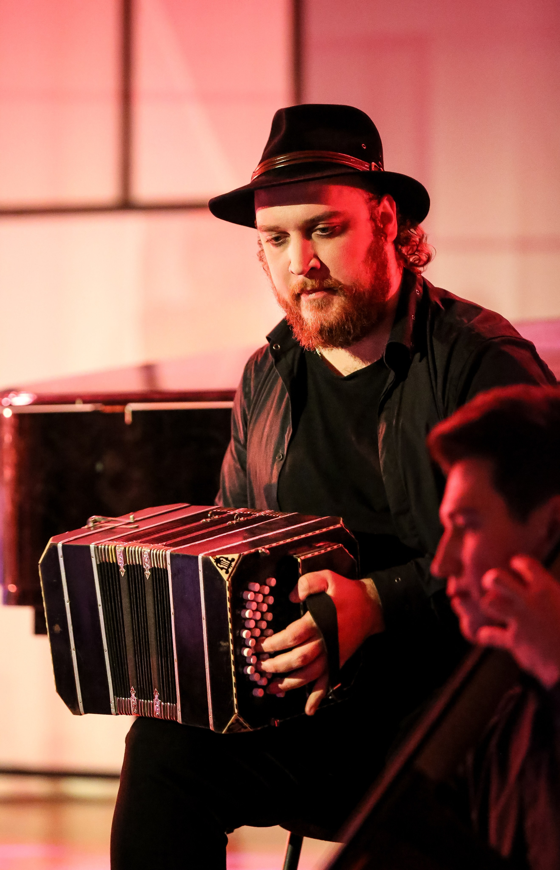 Наряду с оркестром (в котором представлены струнные, гитара, флейта, фортепиано, синтезатор и ударные) в спектакле, конечно же, задействован бандонеон (солист — Анатолий Сафонов). Даже так — Бандонеон, поскольку это фактически самостоятельное действующее лицо, соблазнитель Марии, «архангел всех борделей мира», как она зовет его. Солист без слов, но с голосом, что терзает душу.