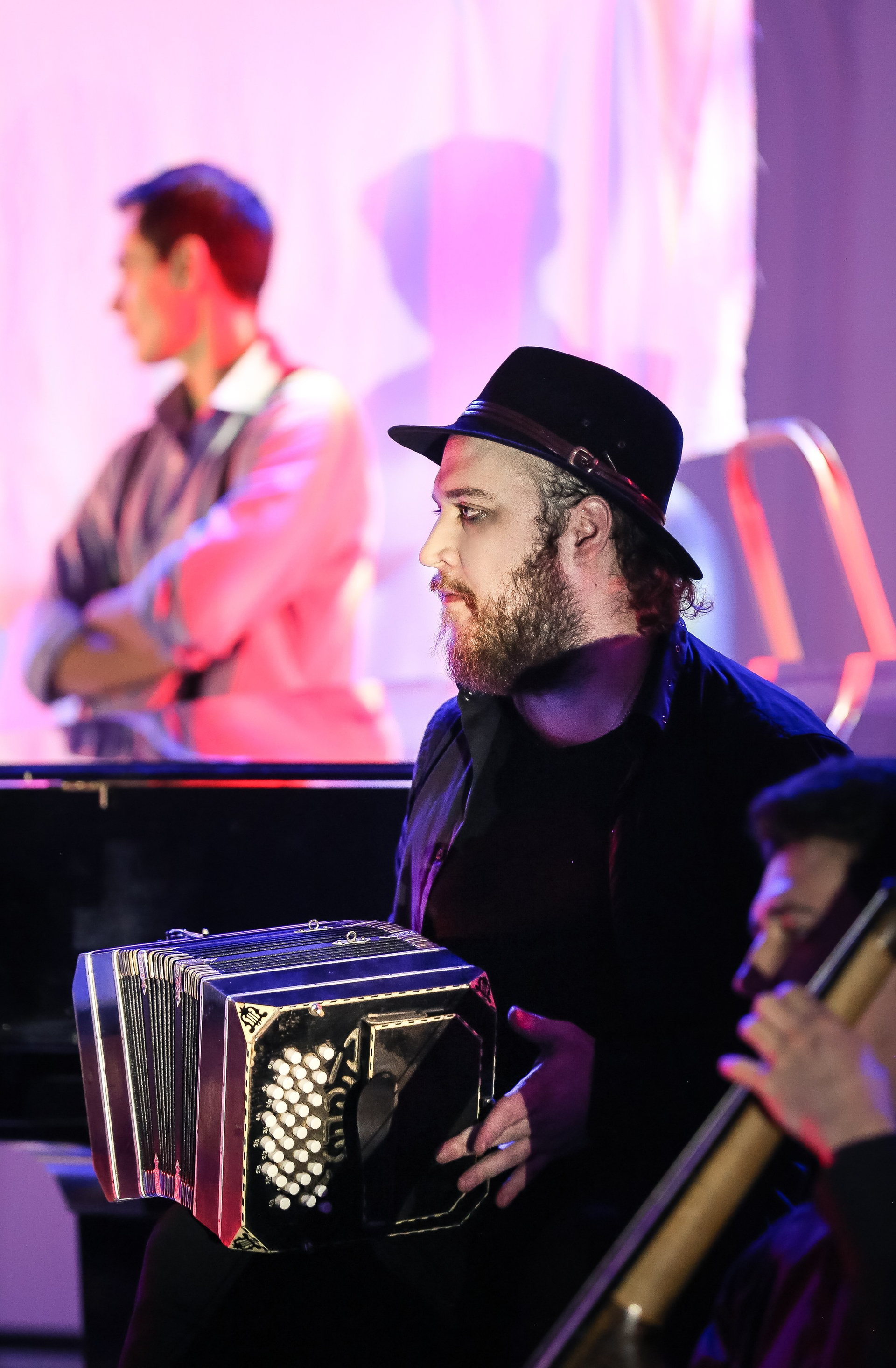 Однако когда я узнала, что 4 ноября в Рахманиновском зале состоится ночная премьера «Марии де Буэнос-Айрес» под управлением дирижера Джереми Уолкера, то загодя была уверена — музыкальная часть точно не подкачает! Джереми необыкновенный музыкант с ярким и многогранным талантом — выпускник музыкального факультета Королевского Колледжа Лондона, причем как певец (потому умеет работать с вокалистами) и как музыковед (потому умеет работать со смыслами) — в настоящий момент он учится на кафедре оперно-симфонического дирижирования Московской консерватории и сотрудничает со многими коллективами. Так, нынешней весной под началом Джереми был создан камерный оркестр «Leggiero», который и участвовал в исполнении оперы — получилось, с одной стороны, академически точно, безупречно по ансамблю и в то же время очень пылко, совершенно в стиле танго.