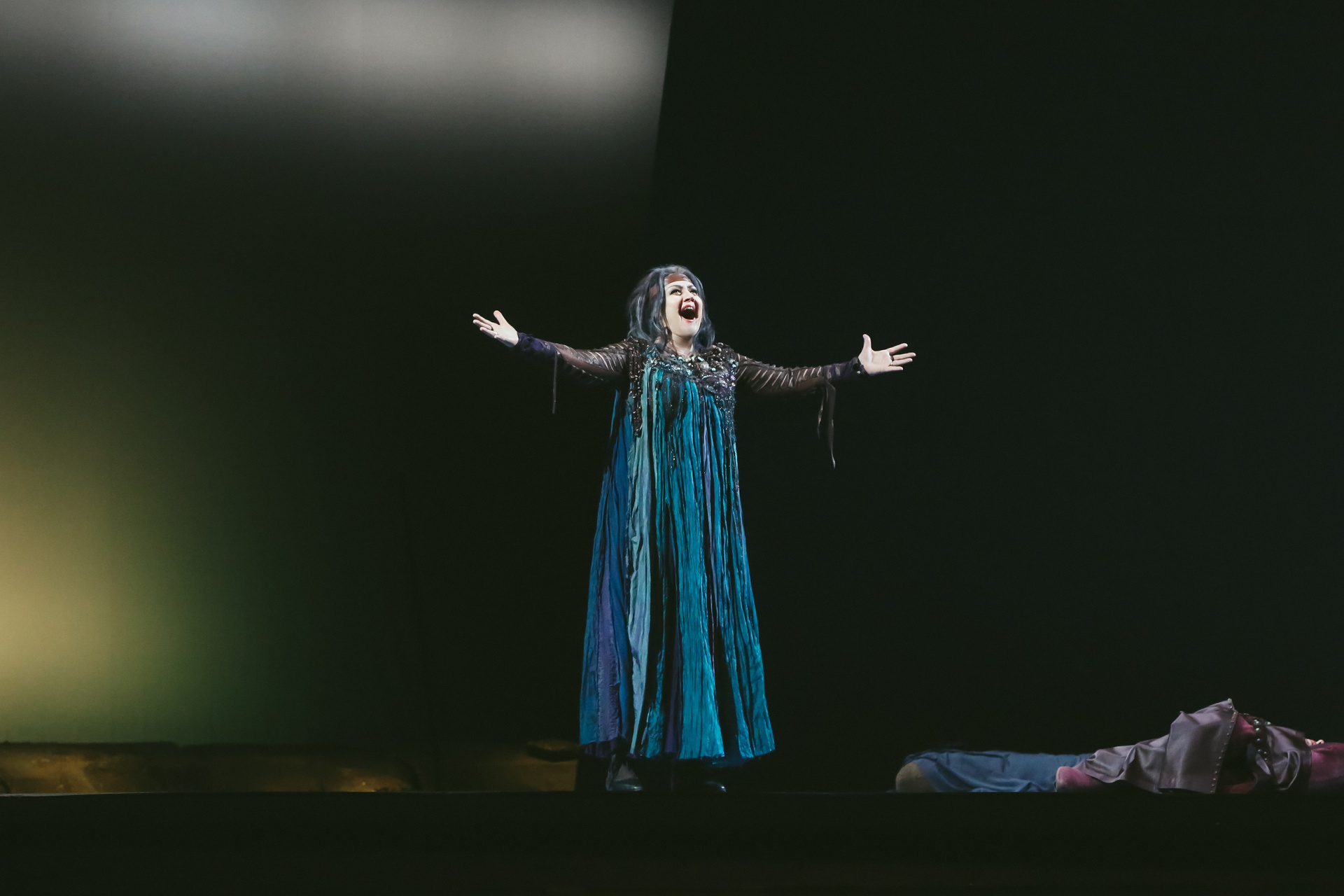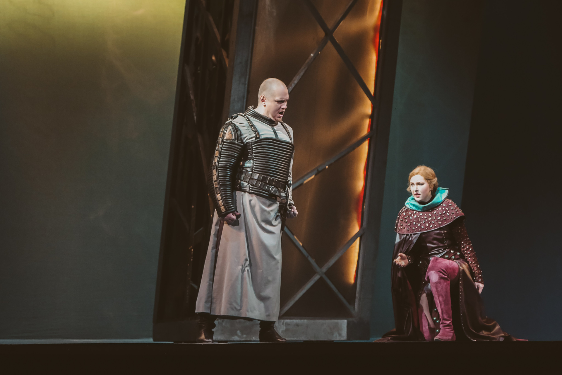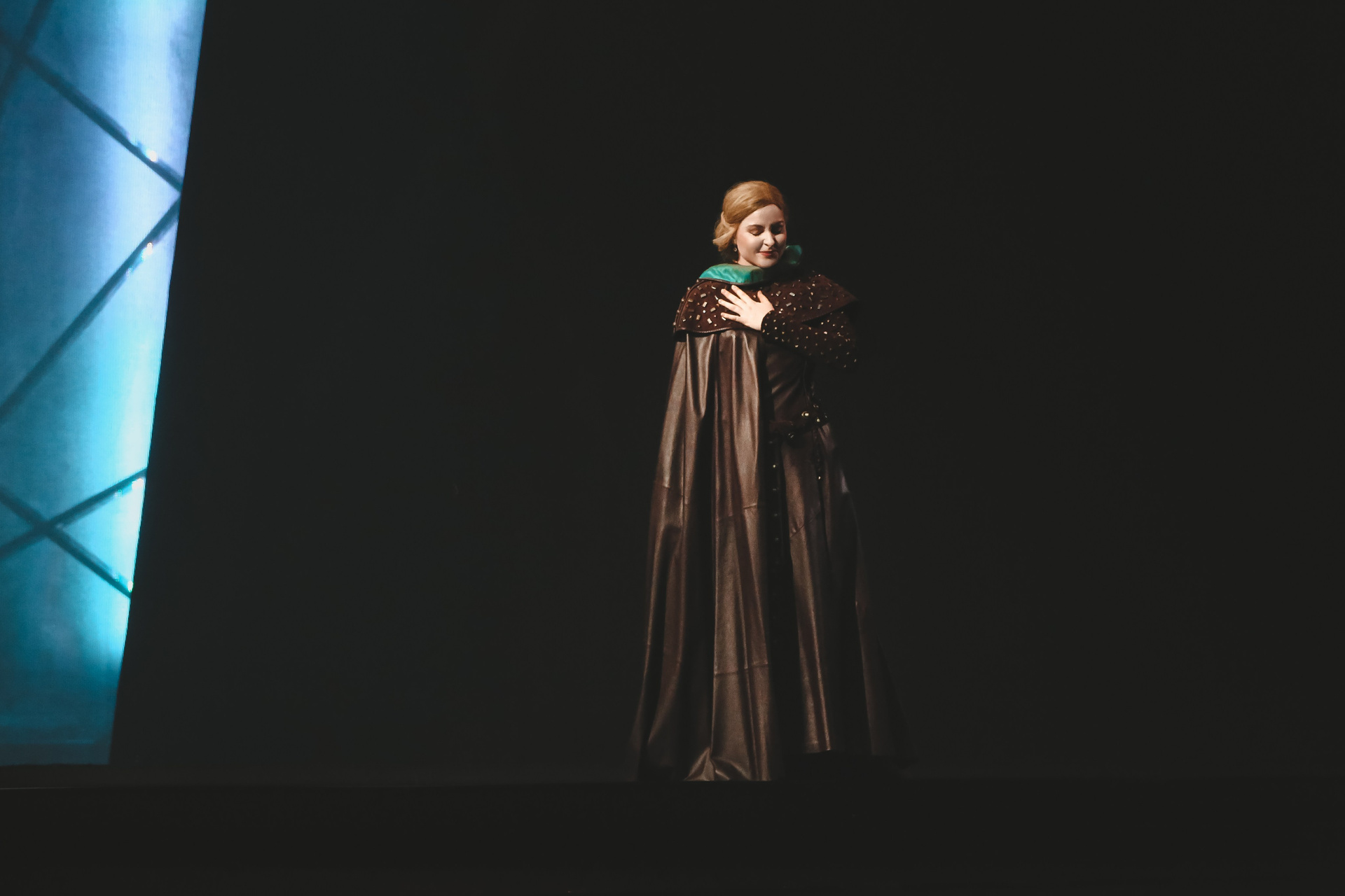 В этом смысле «Трубадура», который ещё с 2012-го года идёт в «Новой опере» (в постановке итальянской команды) можно назвать довольно компромиссным. С одной стороны, сценография по-современному минималистичная, абстрактная и стильная: три огромных башни-призмы, каждая с тремя сторонами, символизирующие, соответственно, миры героев — графа ди Луна, Леоноры и цыган, при этом большое значение придаётся цвету и в целом световой партитуре, а в остальном всё довольно традиционно. В общем, крепкий такой спектакль, который радует глаз красочностью и эстетизмом, а слух — отменной работой оркестра и хора, потому по возможности всегда иду, если вижу в афише. Так что ради очередного показа в начале февраля даже нарушила свое декретное затворничество. Хотя были для этого и дополнительные веские поводы. Например, послушать новый для меня в этой постановке состав солистов. Как известно, без великолепной пятерки голосов к «Трубадуру» и приступать даже не стоит, но в этом смысле заявленный каст был многообещающим, сильным и гармоничным, так что не обманул ожиданий (Азучена — Агунда Кулаева, Манрико — Михаил Новиков, Граф ди Луна — Андрей Борисенко, Леонора — Кристина Пономарева, Феррандо — Константин Федотов).
