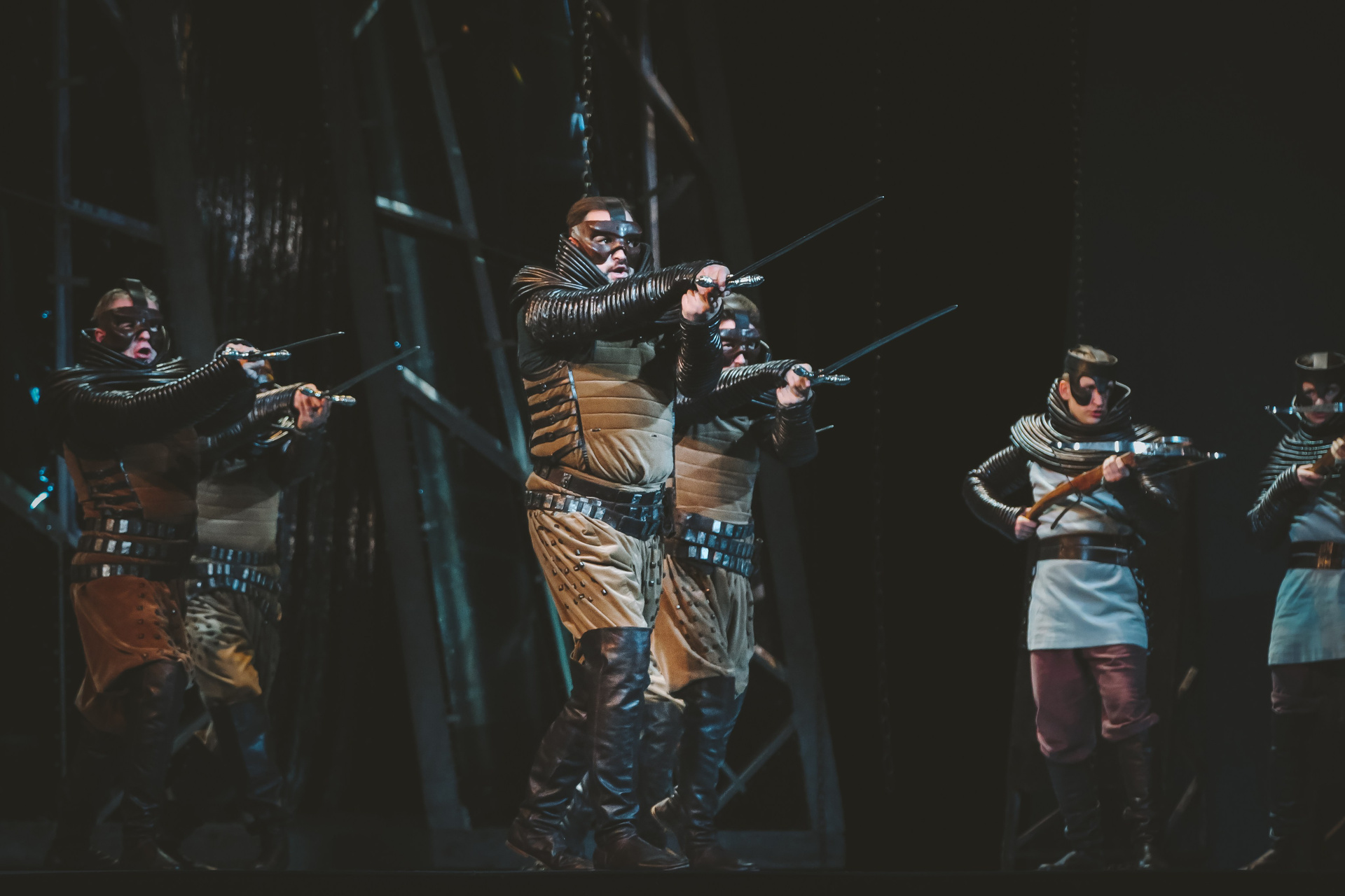 Вся эта опера, по сути, призыв к отмщению тиранам, к героической борьбе. Потому еще она мне столь симпатична, так что готова слушать бесчисленное количество раз и во всевозможных интерпретациях. Причём одинаково люблю как классические костюмные спектакли с «замком-табором-темницей» и всем полагающимся, так и режиссерские актуализации вроде экстремально брутальной и зрелищной версии Оливье Пи в Мюнхене или обожаемого спектакля Чернякова в духе психологического триллера.