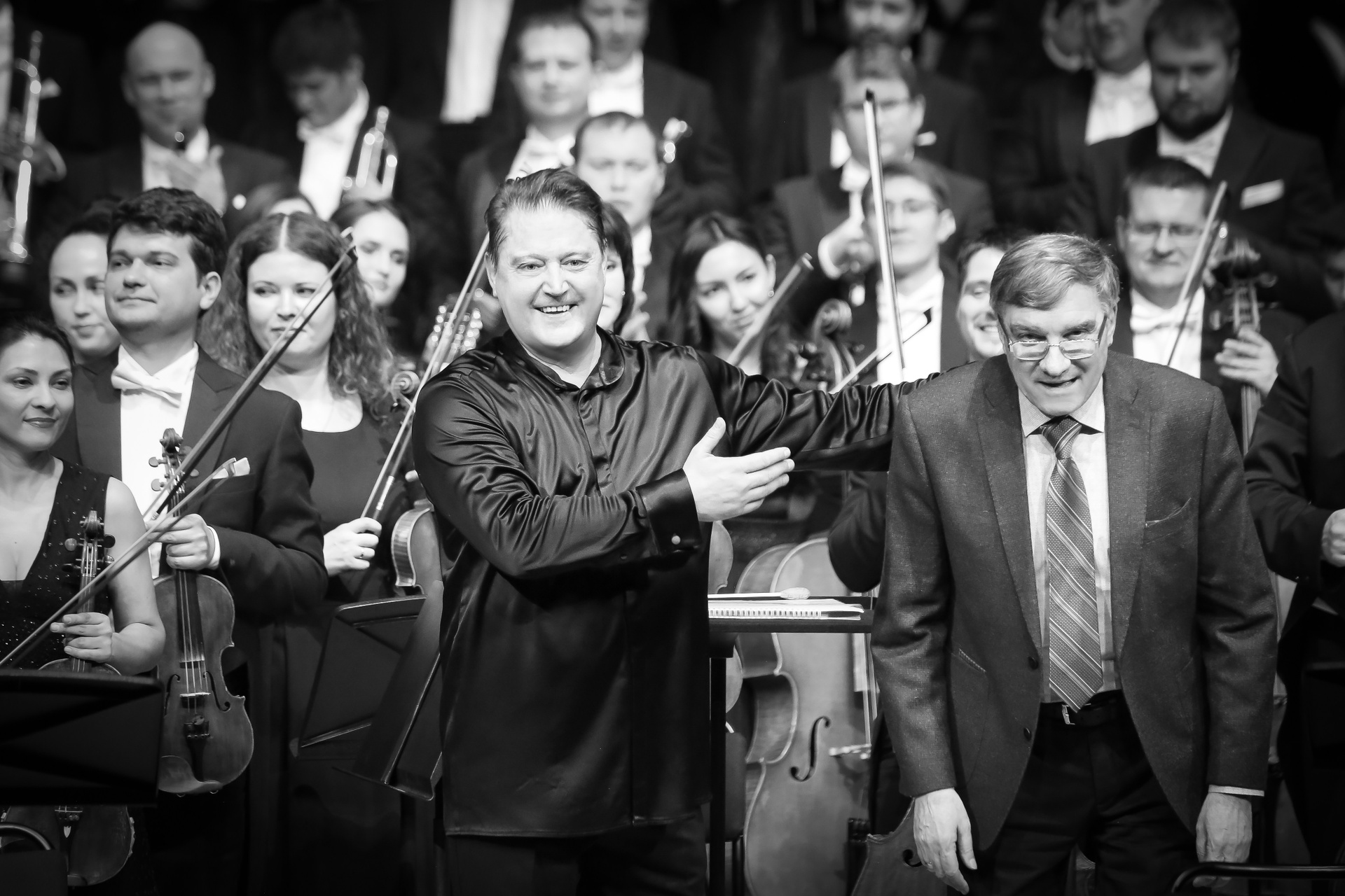 Это восхищение было усилено последовавшим экстатическим соло баритона — истинным гимном вечной любви, сменяемым драматическим монологом баса, гимном уже философским, полным экспрессии и патетики, — эта прочувствованная и осмысленная лирика в исполнении, соответственно, Василия Ладюка и Евгения Ставинского стала одним из самых сильных моментов симфонии.