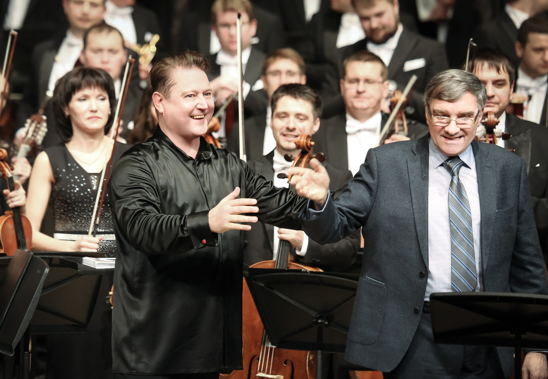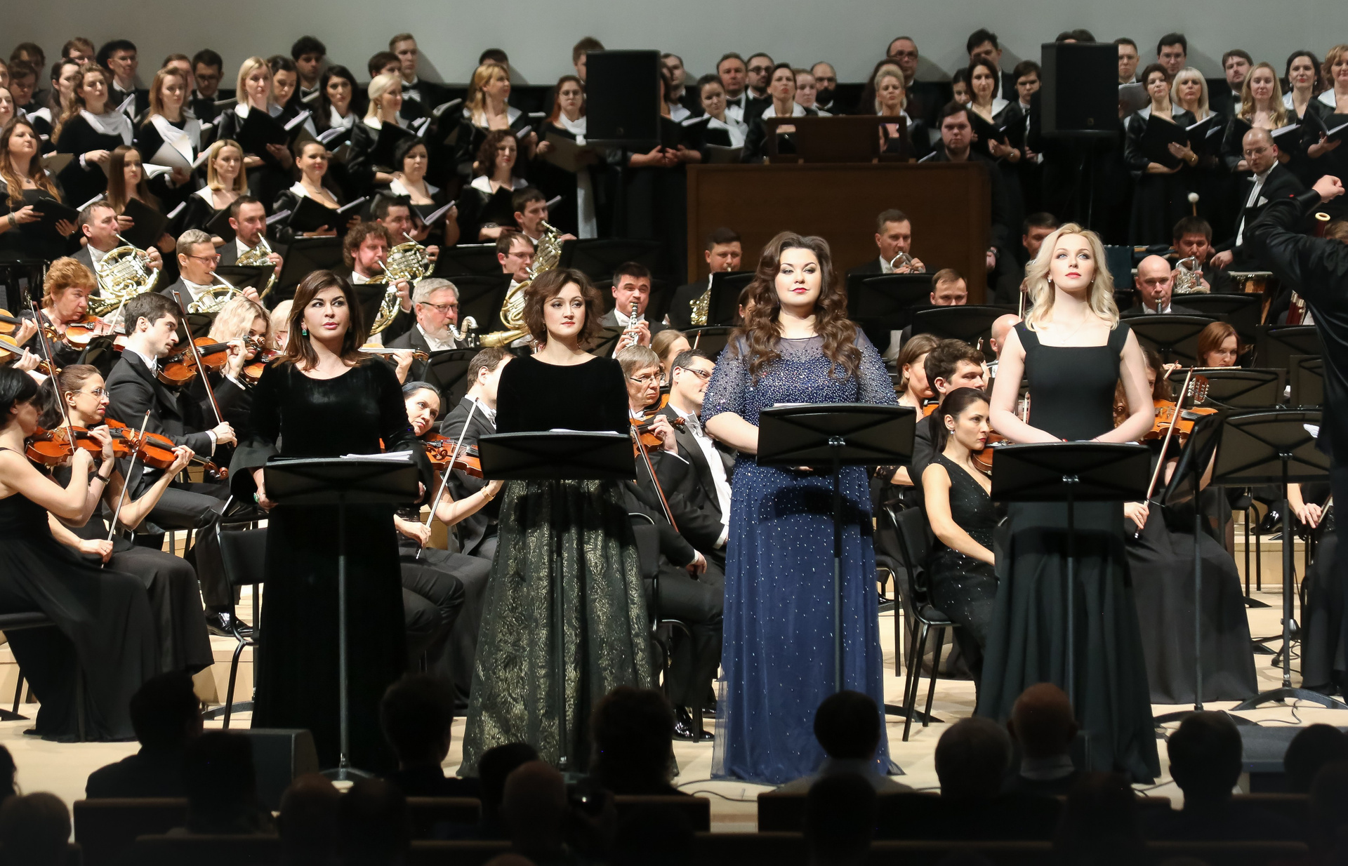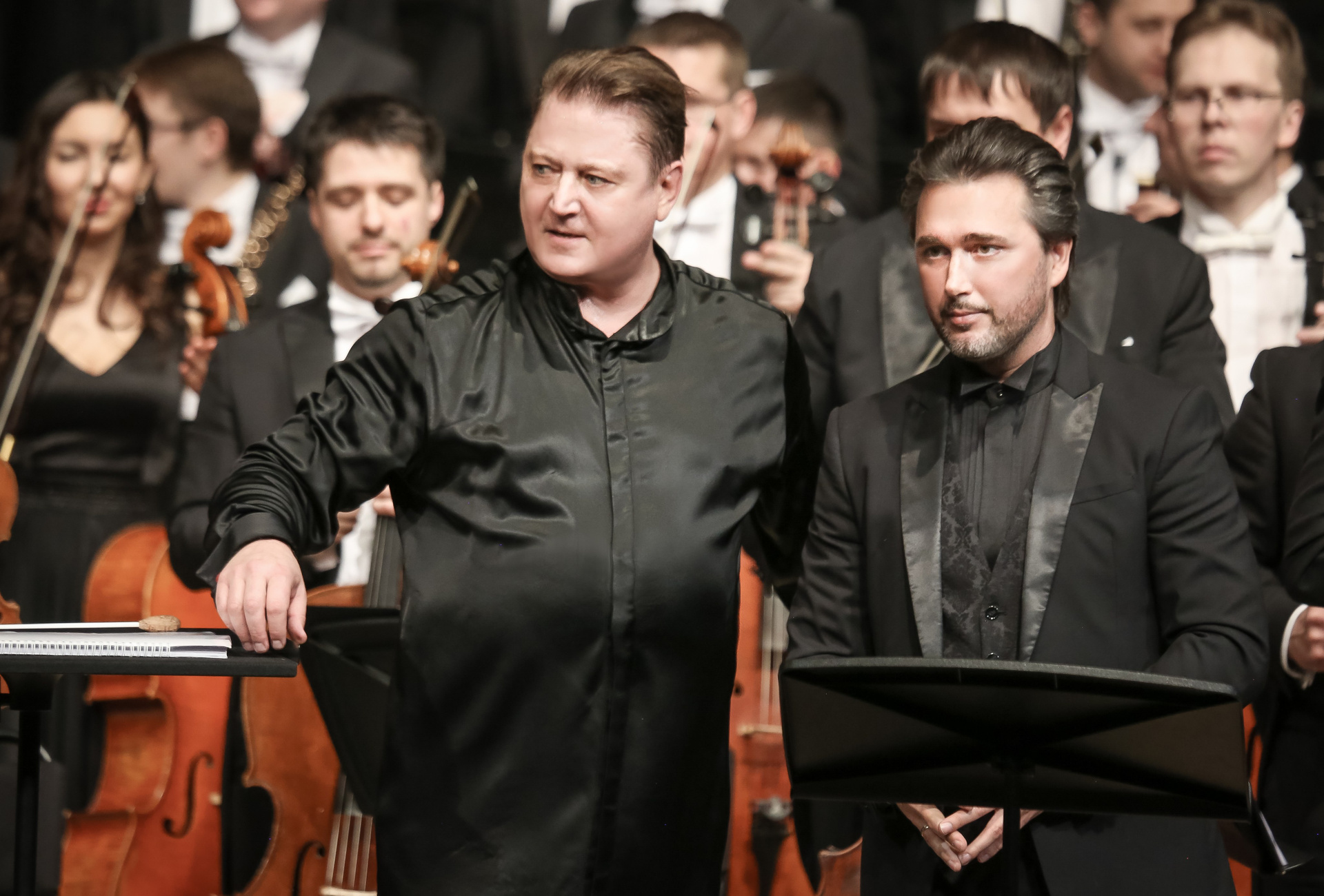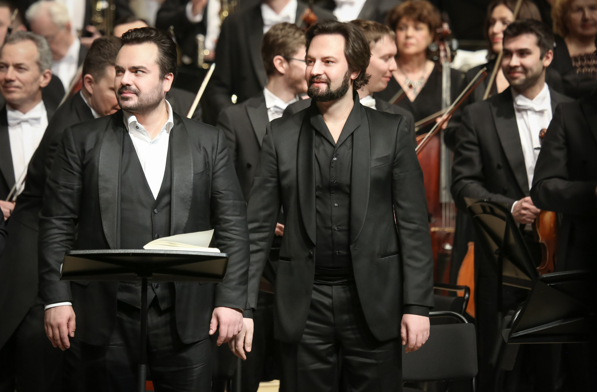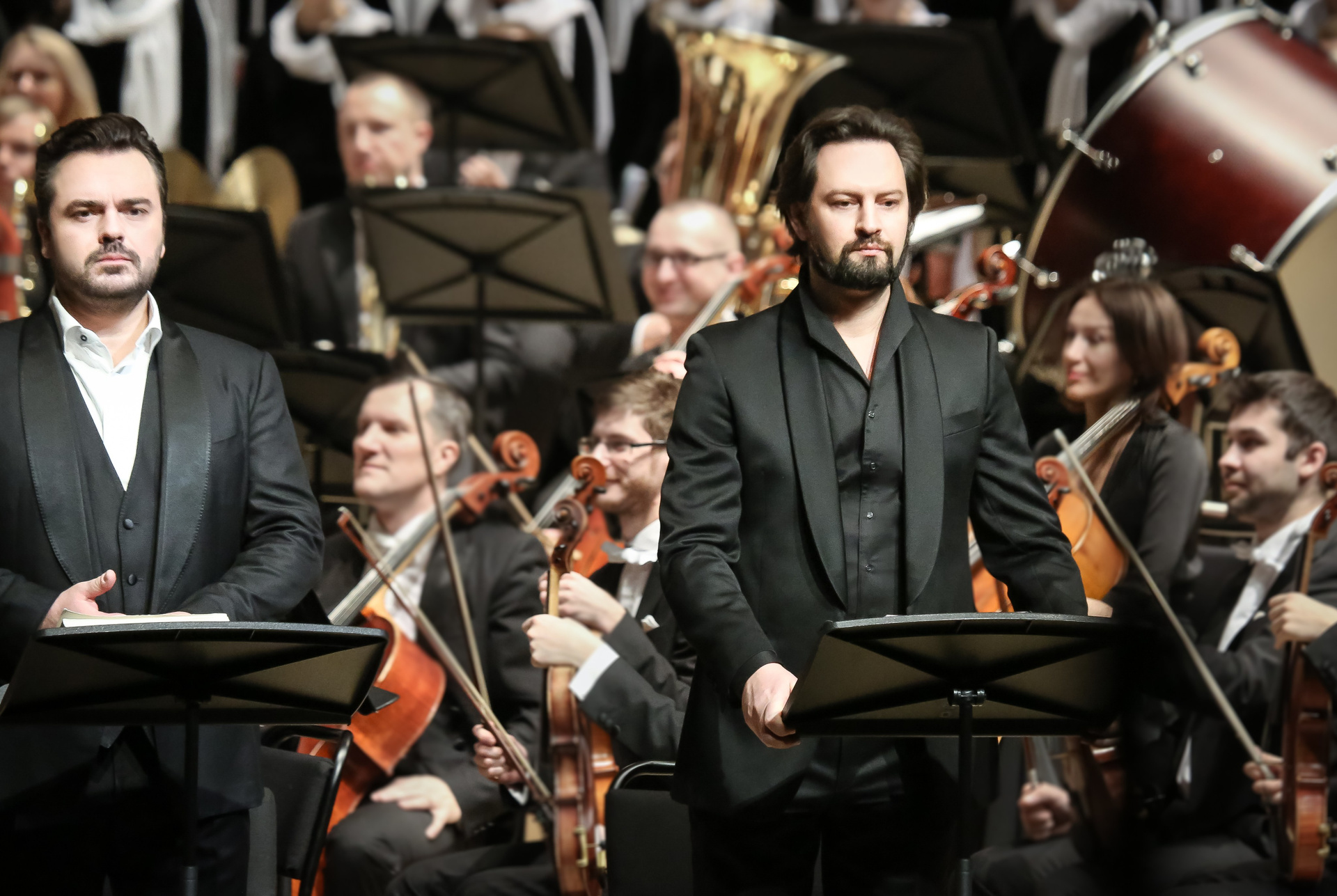 Это созвездие певцов, к сожалению, понесло определенные потери — перед началом симфонии ведущий предупредил о болезни Алексея Татаринцева, но поскольку практически нет вокалистов, готовых сходу «влететь» в подобное произведение, замены не оказалось и Алексею стоически пришлось выступать самому. При этом надо отметить, хоть голос звучал легко, почти безвибратно, однако не тонул в массе оркестра. Да и в целом сольные фрагменты прослушивались отлично, вызывая восторг и трепет — в особенности парящее в поднебесной фактуре сопрано Ирины Боженко, густое меццо Олеси Петровой, изумительные арии Василия Ладюка и Евгения Ставинского во второй части.